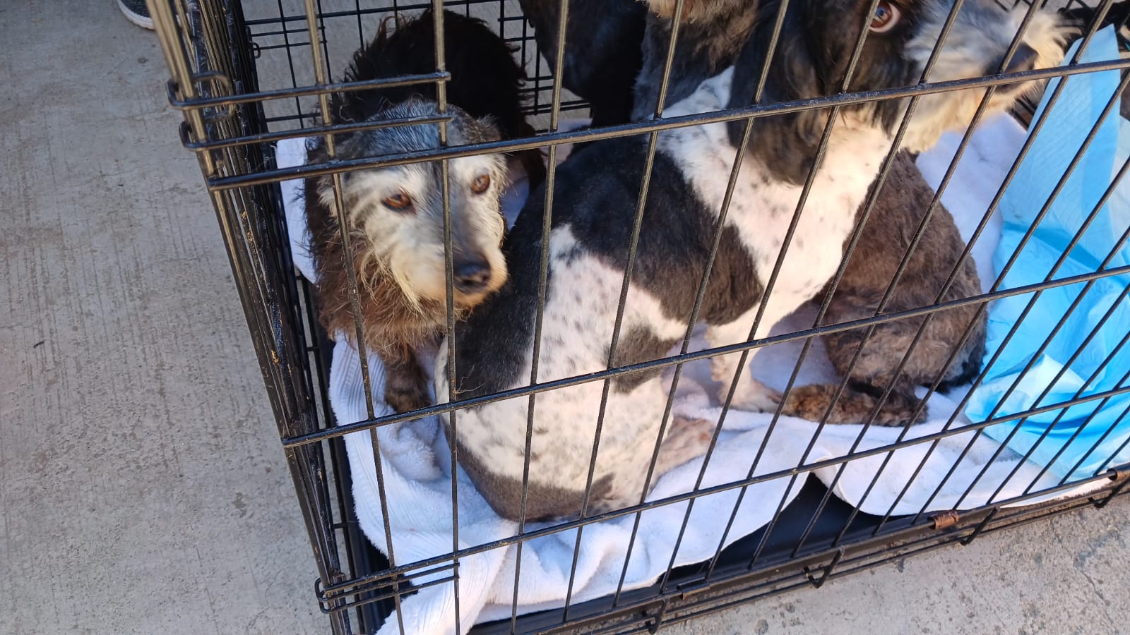 Durante la diligencia, la Unidad de Tramitación Masiva de Causas de la Fiscalía Regional de Tecate, localizó en el interior del predio a cuatro caninos, dos machos y dos hembras de raza French Poodle, de tamaño mediano y color oscuro. Los animales presentaban condiciones de descuido extremo: sucios, con el pelaje largo, enredado, y sin acceso visible a agua o alimento.