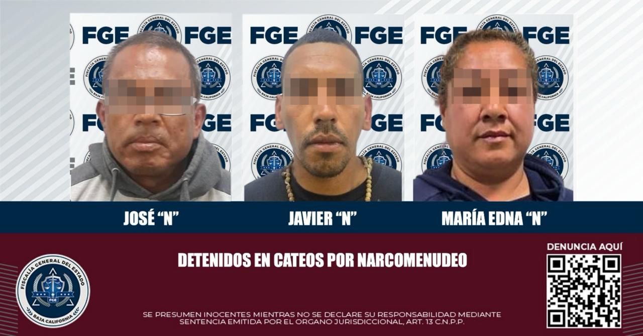 TIJUANA, BAJA CALIFORNIA. - La Fiscalía General del Estado continúa realizando operativos de cateo para combatir el delito de narcomenudeo. En tres intervenciones recientes se logró la detención de tres personas —dos hombres y una mujer— y el decomiso de diversas cantidades de droga, así como máquinas tragamonedas y computadoras.