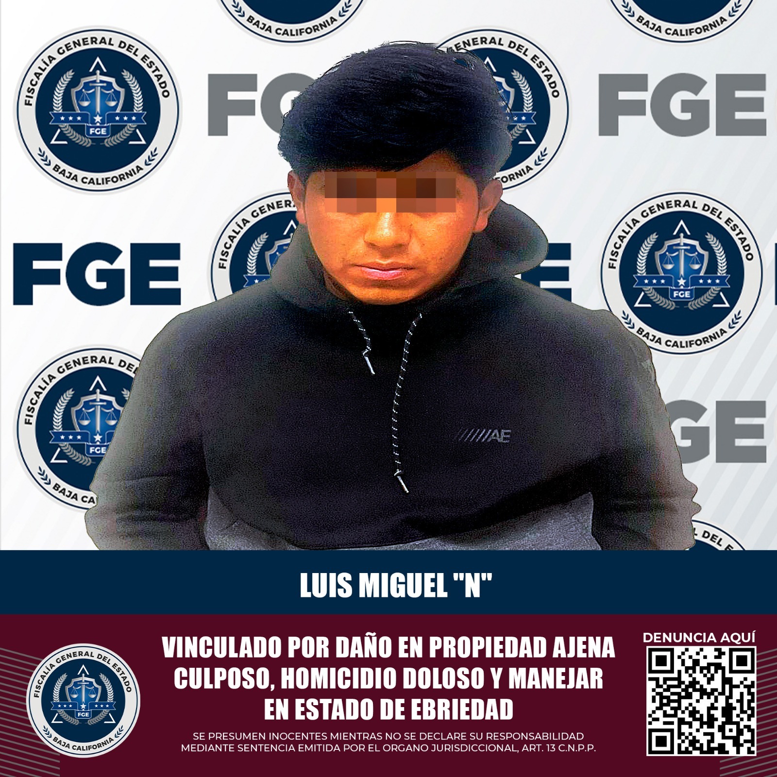 SAN QUINTÍN, BAJA CALIFORNIA - La Fiscalía Regional de San Quintín obtuvo la vinculación a proceso de Luis Miguel “N” por los delitos de homicidio doloso, daño en propiedad ajena culposo y conducir en estado de ebriedad, como resultado de un accidente de tránsito ocurrido el pasado 11 de mayo.