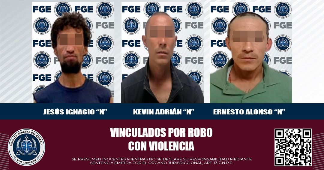 MEXICALI, BAJA CALIFORNIA. - La Fiscalía Regional de Mexicali obtuvo la vinculación a proceso de tres individuos acusados del delito de robo con violencia, en audiencias que se llevaron a cabo por separado.