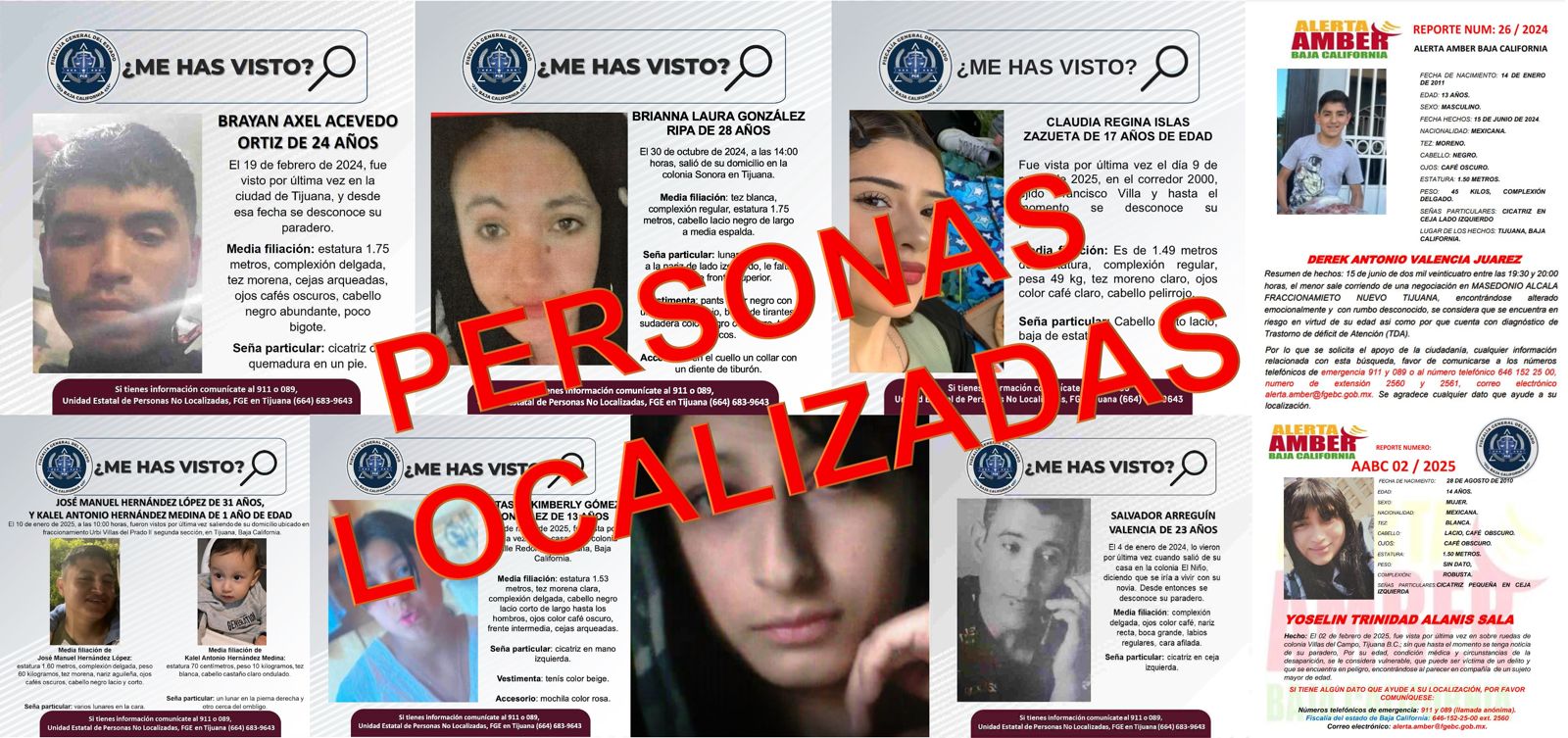 TIJUANA, BAJA CALIFORNIA. - La Fiscalía General del Estado (FGE) informa de la localización de diez personas que habían sido reportadas como desaparecidas, seis de ellas menores de edad. Este grupo, compuesto por cinco mujeres y cinco hombres, fue localizado en condiciones óptimas de salud.
