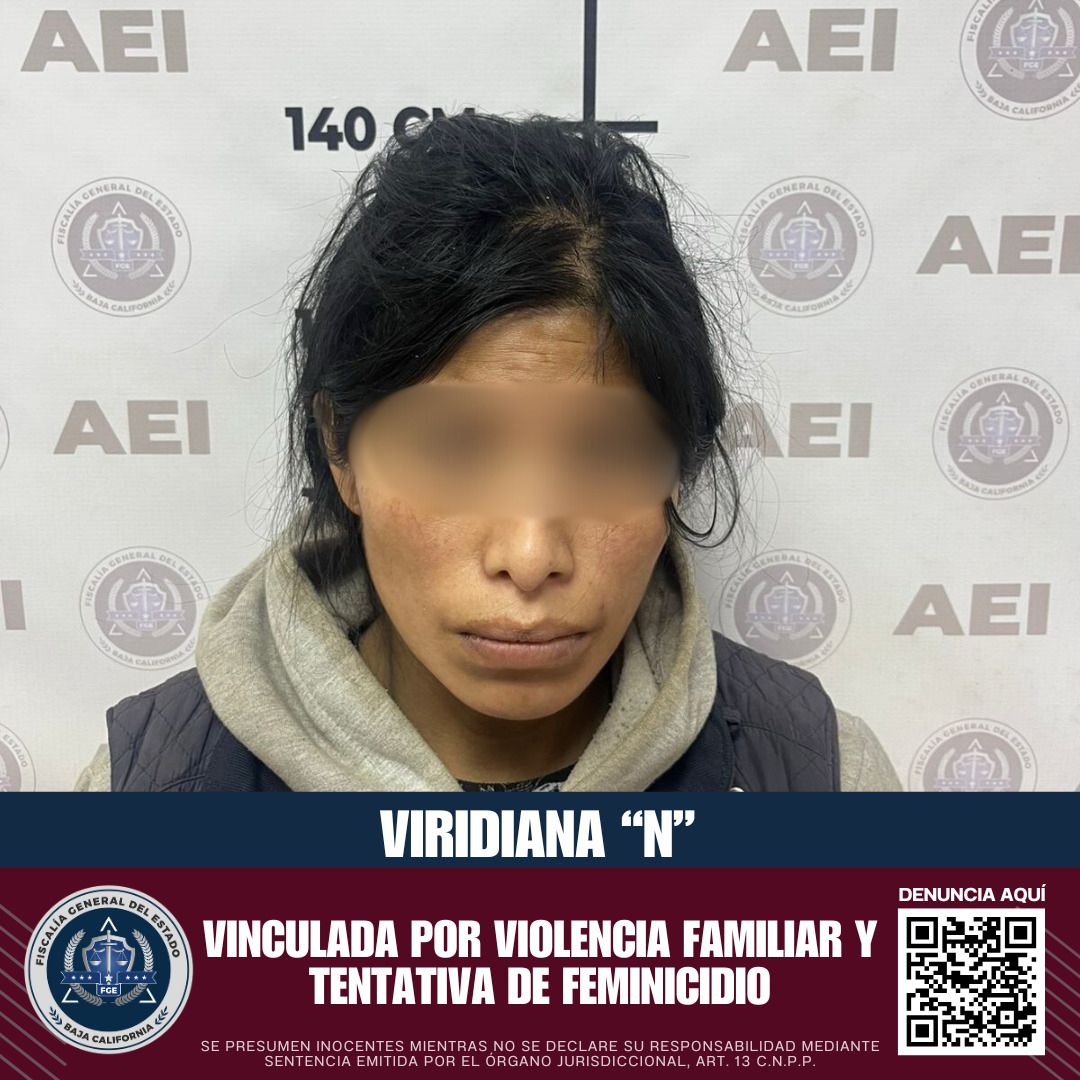 SAN QUINTÍN, BAJA CALIFORNIA. - La Fiscalía General del Estado informa que, como resultado de las diligencias realizadas por la Fiscalía Especializada en Delitos Cometidos Contra la Mujer por Razón de Género, se ha vinculado a proceso a Viridiana “N” por su probable responsabilidad en los delitos de violencia familiar y feminicidio agravado en grado de tentativa, cometidos en agravio de su hija, una menor de edad.
