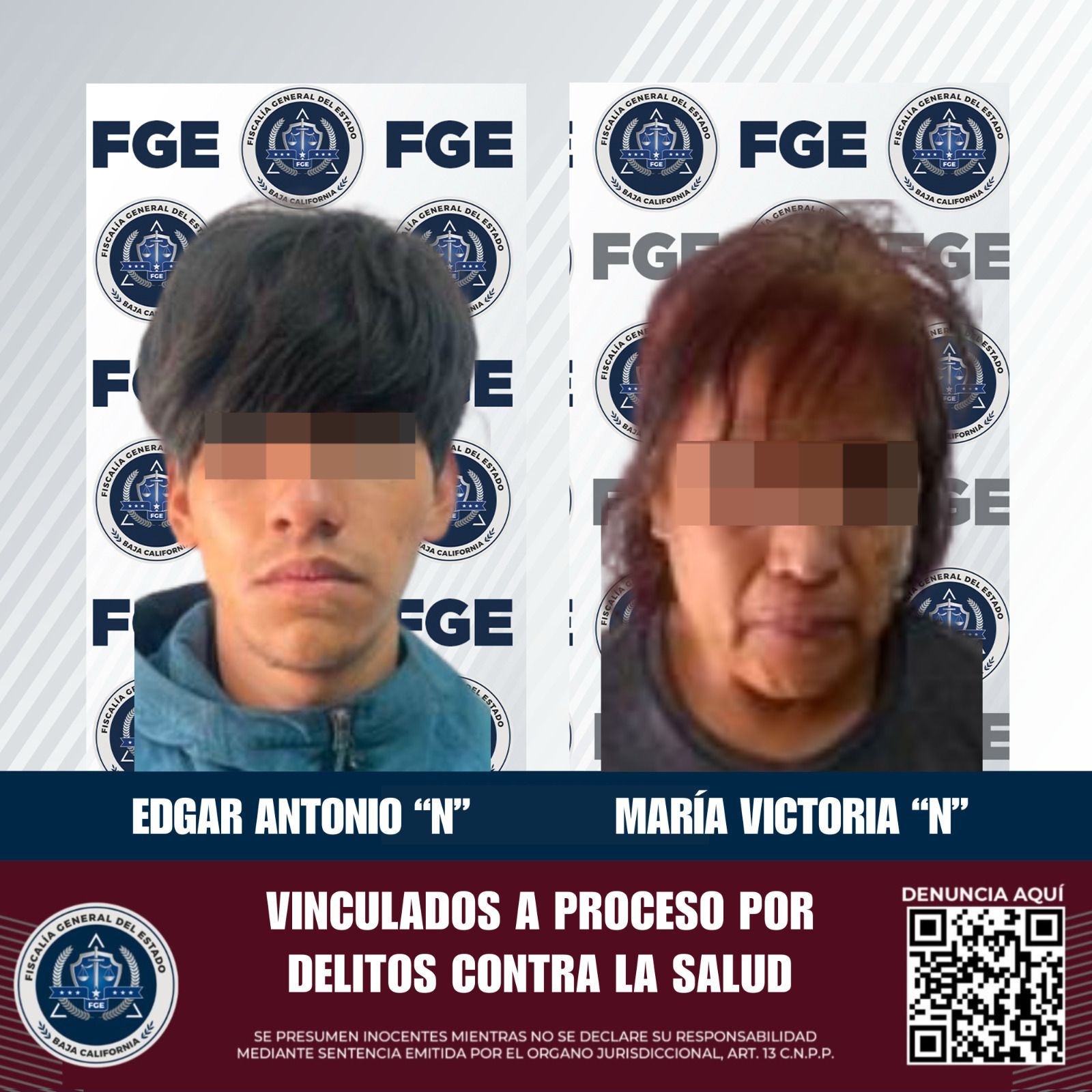 PLAYAS DE ROSARITO, BAJA CALIFORNIA. - La Fiscalía General del Estado logró que fueran vinculadas a proceso dos personas, quienes previamente fueron detenidas en cateos realizados en colonias del municipio para combatir el narcomenudeo.