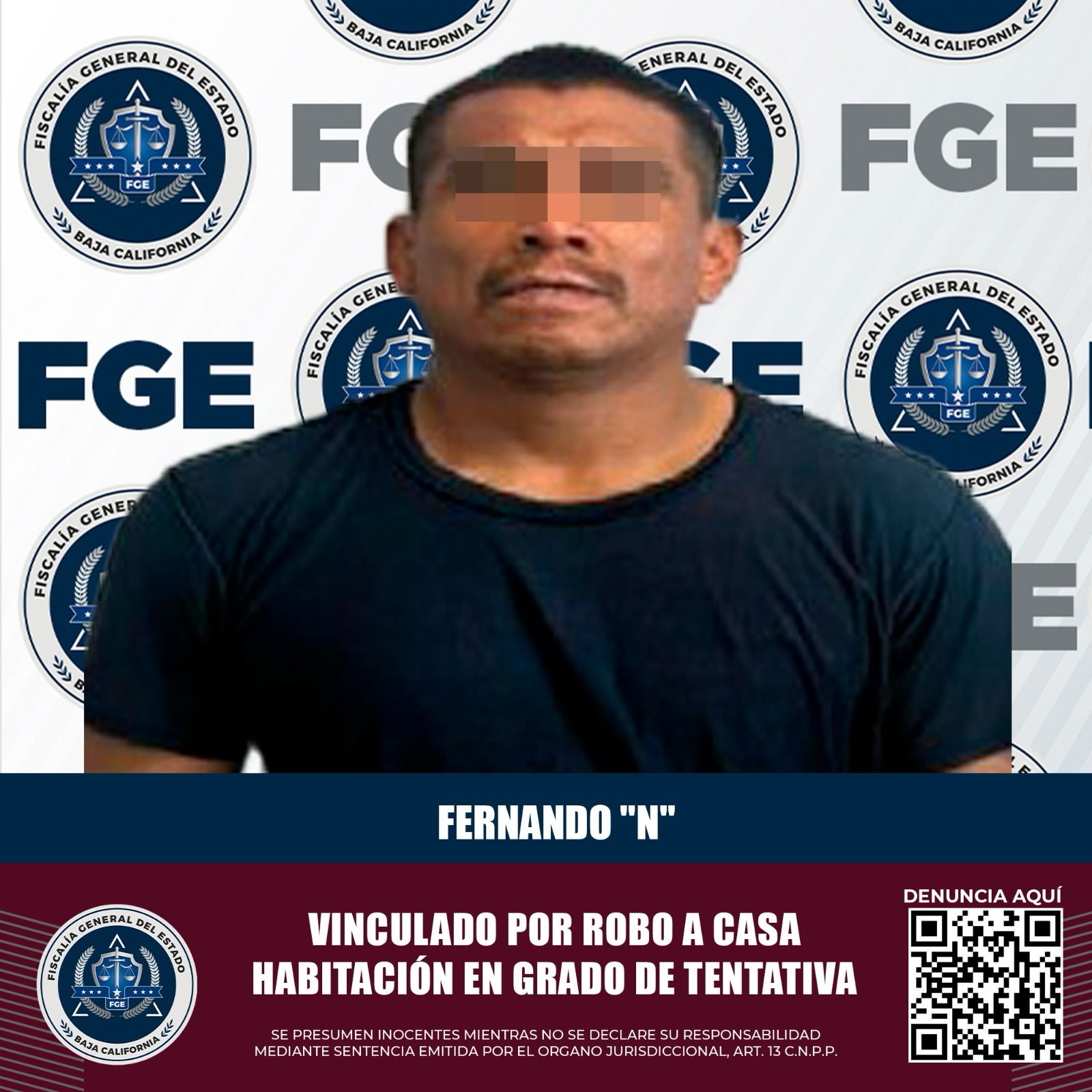 MEXICALI, BAJA CALIFORNIA. - La Fiscalía Regional de Mexicali, a través de la Unidad de Investigación de Robos Poniente, obtuvo la vinculación a proceso de un segundo implicado en un intento de robo con violencia registrado en una residencia del fraccionamiento Los Pinos.