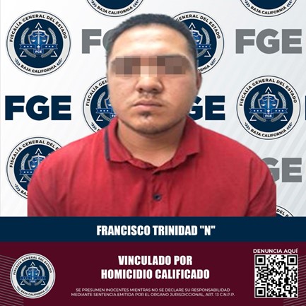 MEXICALI, BAJA CALIFORNIA. - La Fiscalía General del Estado (FGE) logró la vinculación a proceso penal de un hombre presuntamente implicado en un homicidio calificado, ocurrido en octubre de 2024, en perjuicio de un residente de la colonia Solidaridad Social.