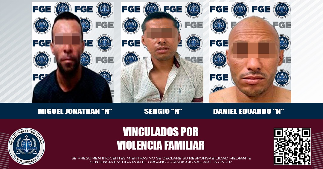 MEXICALI, BAJA CALIFORNIA. - Como resultado del trabajo realizado por la Unidad de Investigación con Detenidos Poniente, la Fiscalía Regional de Mexicali logró vincular a proceso a tres personas por su presunta responsabilidad en el delito de violencia familiar.