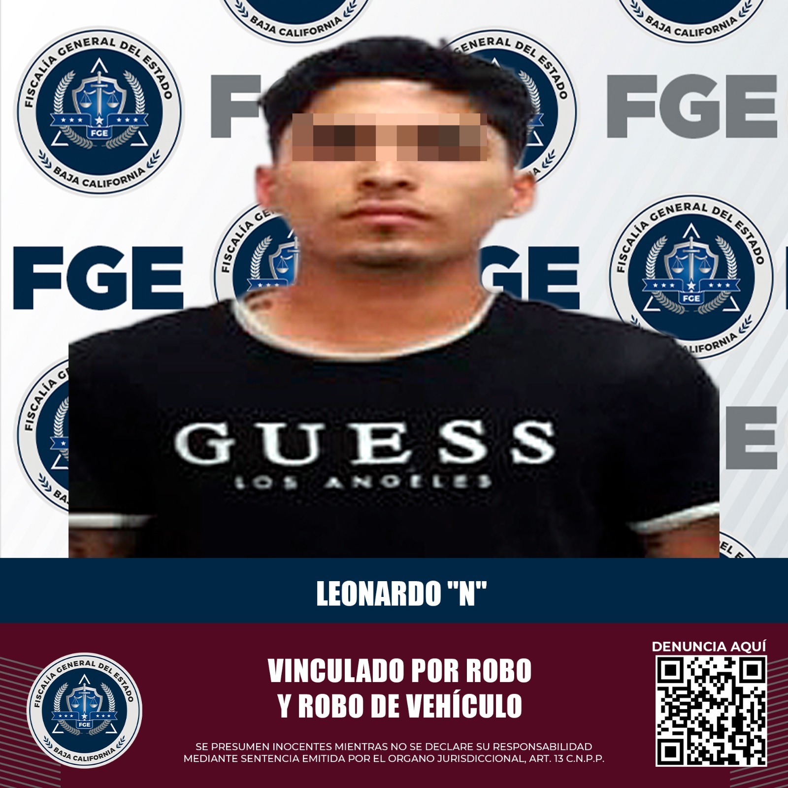 MEXICALI, BAJA CALIFORNIA. - La Fiscalía Regional de Mexicali, a través de la Unidad de Investigación de Delitos de Robo de Vehículo, obtuvo la vinculación a proceso de un hombre por su participación en los delitos de robo de vehículo y robo, ocurridos el pasado 11 de abril.
