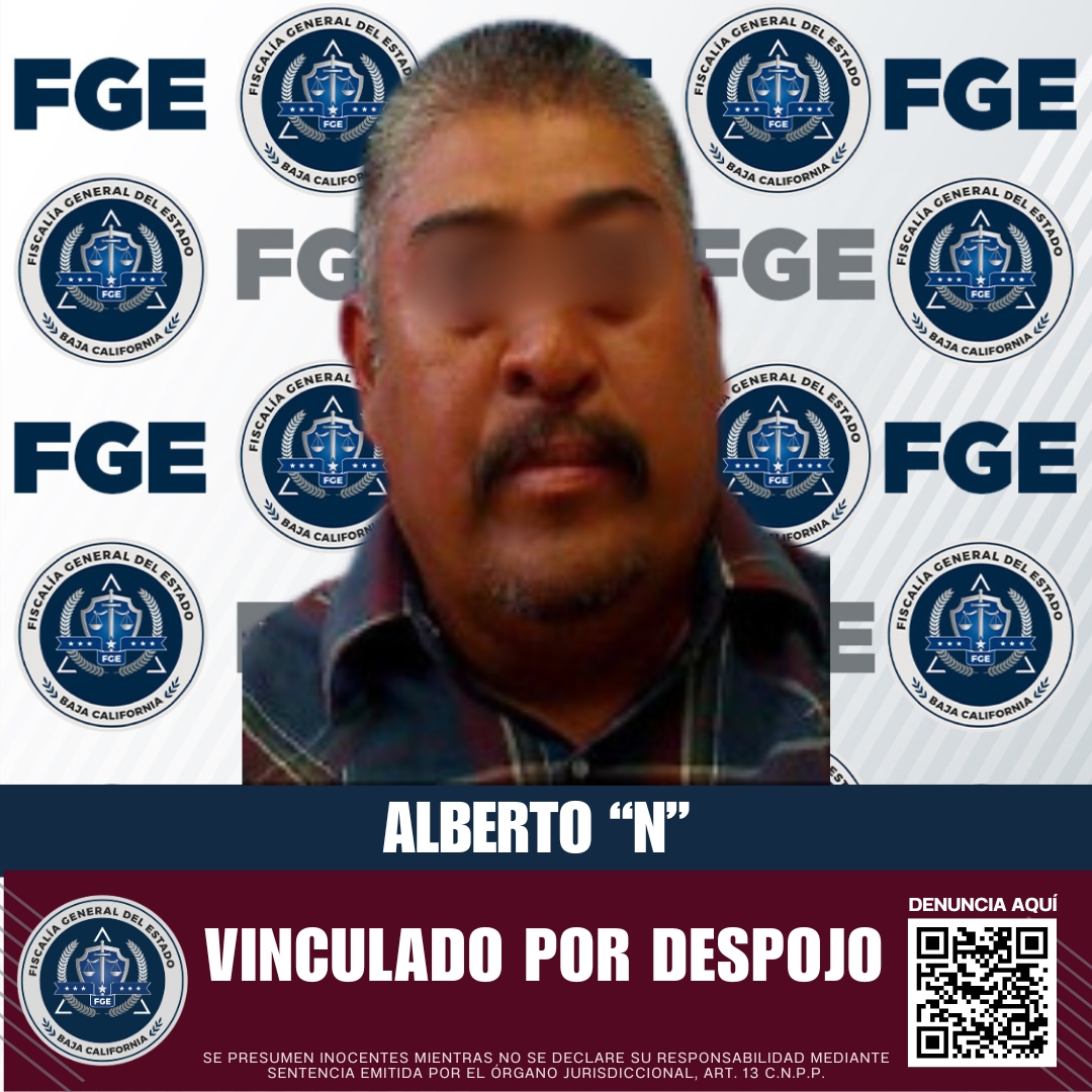 SAN QUINTÍN, BAJA CALIFORNIA. - La Fiscalía Regional de San Quintín, en coordinación con la Unidad de Investigación, logró la vinculación a proceso de Alberto “N” por el delito de despojo. Cabe señalar que el imputado ya se encontraba en prisión preventiva por un proceso previo por allanamiento de morada.