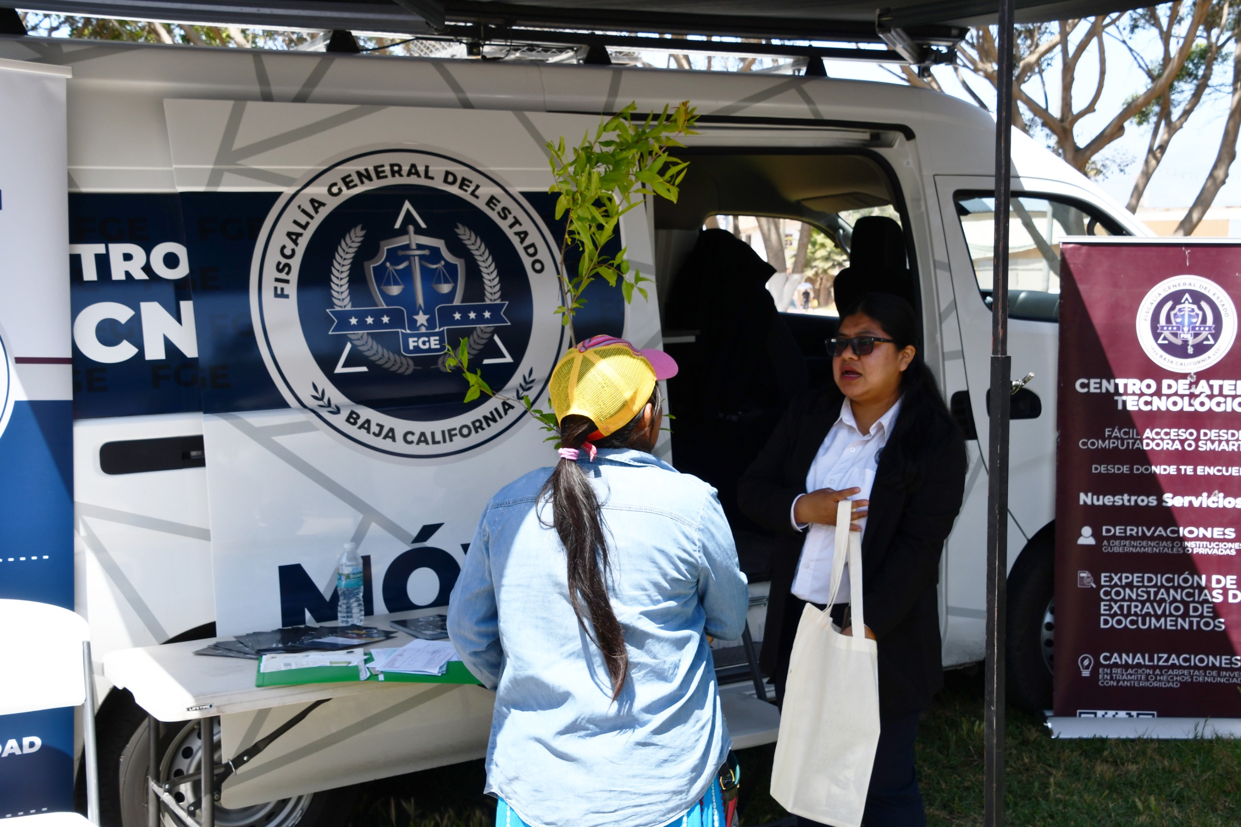 ENSENADA, BAJA CALIFORNIA. - La Fiscalía General del Estado participó en la jornada “Mujer Segura”, realizada en el parque Benito Juárez de la delegación Maneadero, convocada por el Instituto para la Mujer del Estado de Baja California, como parte de los esfuerzos para prevenir y atender la violencia de género.