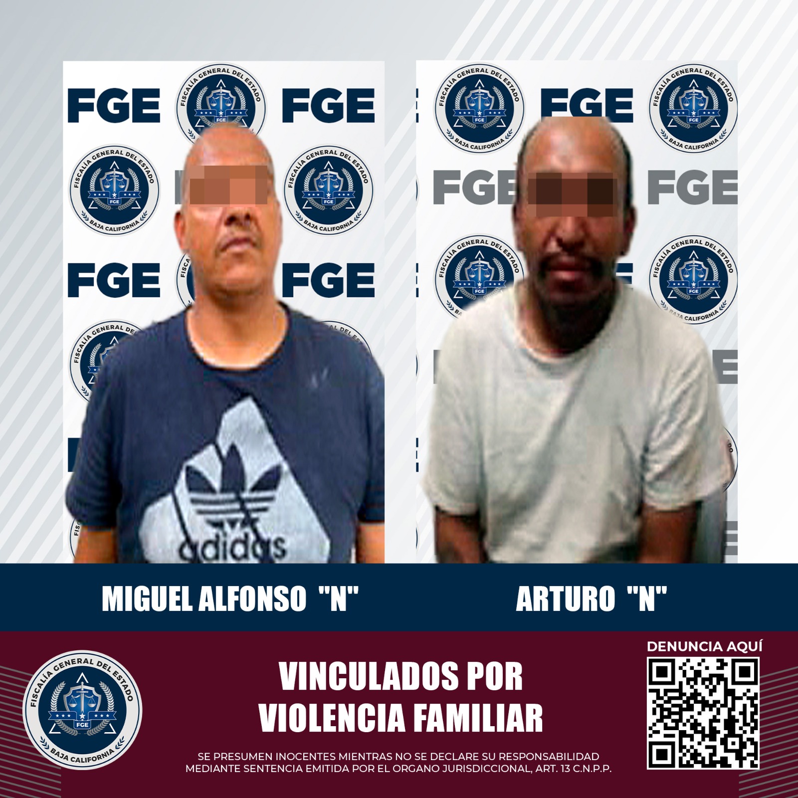 MEXICALI, BAJA CALIFORNIA. - La Fiscalía Regional de Mexicali, a través de la Unidad de Investigación con Detenidos Poniente, obtuvo la vinculación a proceso de dos hombres acusados del delito de violencia familiar, con base en los elementos de prueba presentados.
