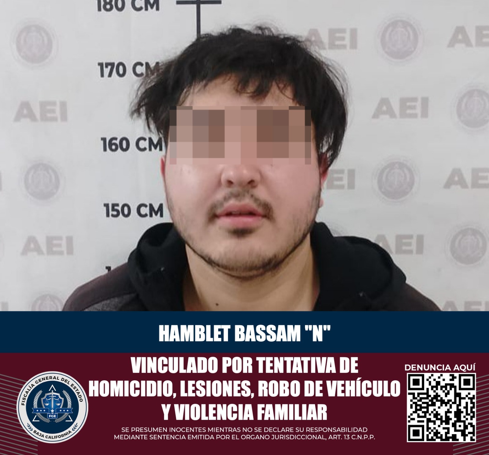 TIJUANA, BAJA CALIFORNIA. - La Fiscalía General del Estado (FGE), a través de la Fiscalía Especializada en Delitos Contra las Mujeres Por Razón de Género dio a conocer que se logró la vinculación a proceso a Hamblet Bassam “N”, a quien se le acusa por los delitos de homicidio calificado en su grado de ejecución de tentativa con ventaja, lesiones calificadas con ventaja, robo de vehículo y violencia familiar.
