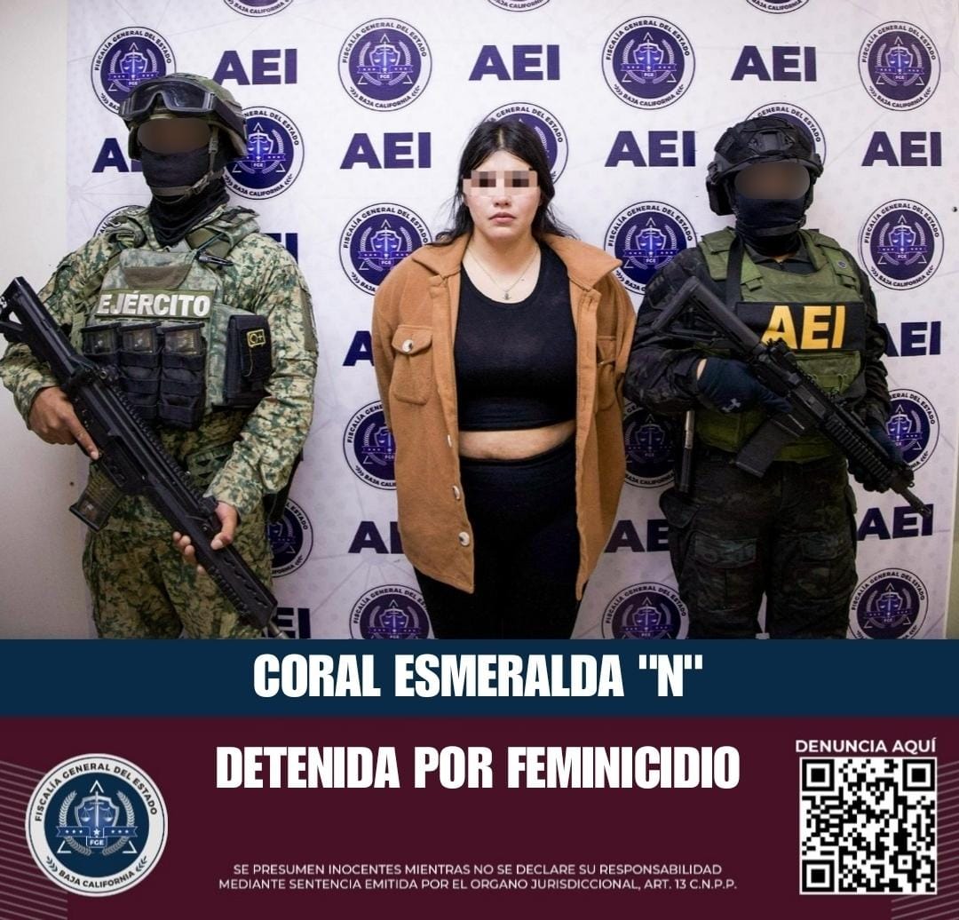 Se trata de la detención con orden de aprehensión de Coral Esmeralda “N”, a quien se le imputa hechos por estar presuntamente implicada en el delito de feminicidio de una joven de 18 años de edad en la ciudad de Tijuana en la colonia Lomas Taurinas.