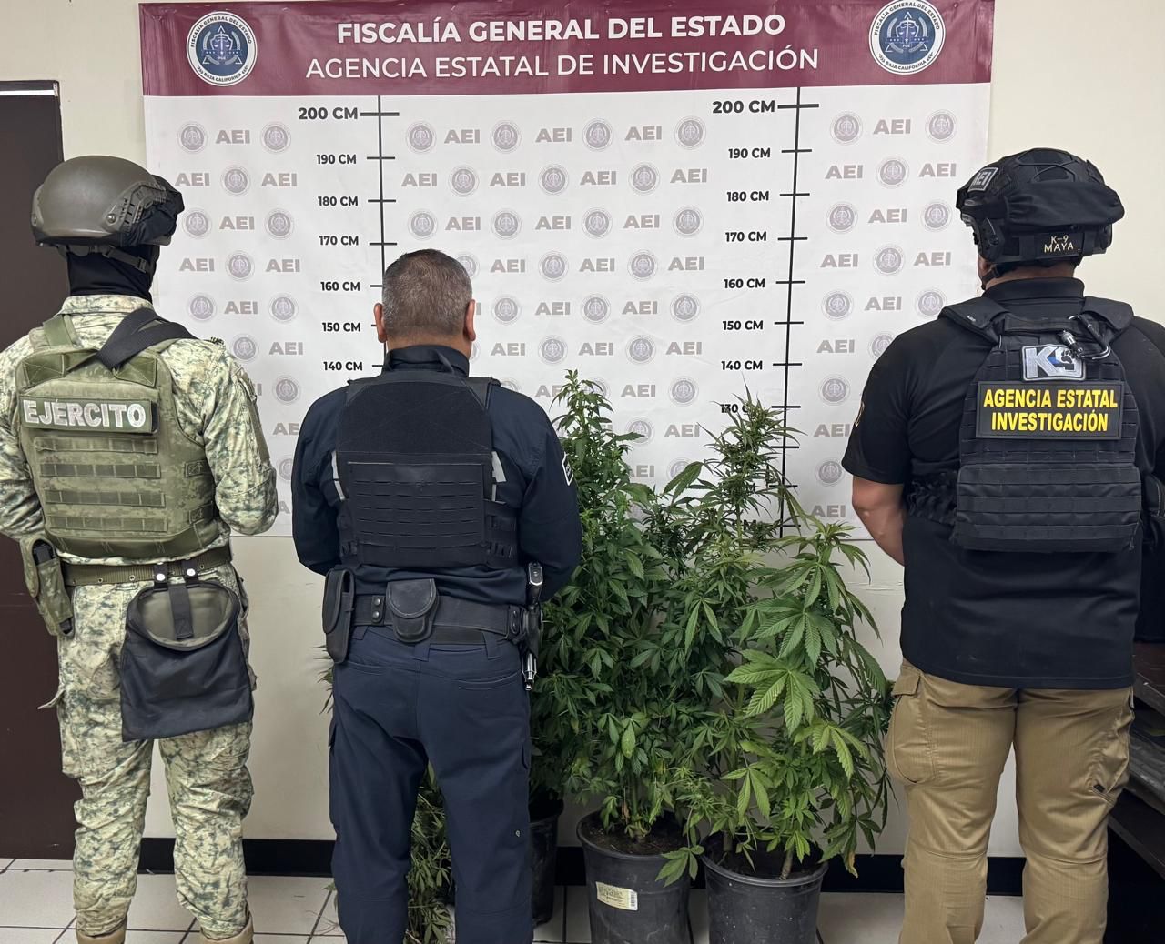 Como resultado de la diligencia, se incautaron seis plantas con posible droga (marihuana), un inmueble asegurado, consistente en un predio de 8 metros de frente por 15 de fondo, con una vivienda de cemento y bloque, techo de madera, patio trasero techado con bóveda de ladrillo y dos cuartos adicionales de madera (uno en construcción), dos personas detenidas y una menor de edad enviada al resguardo del DIF estatal por su seguridad.