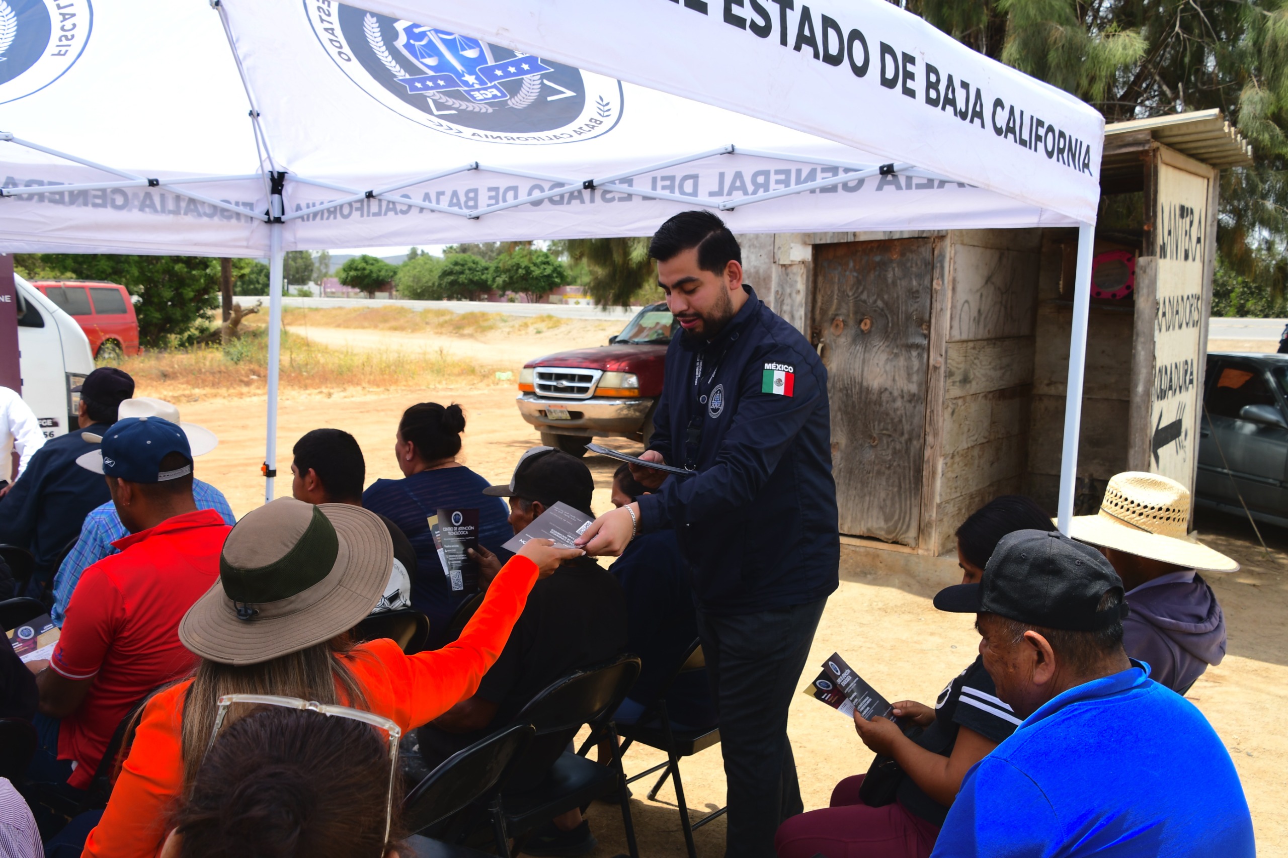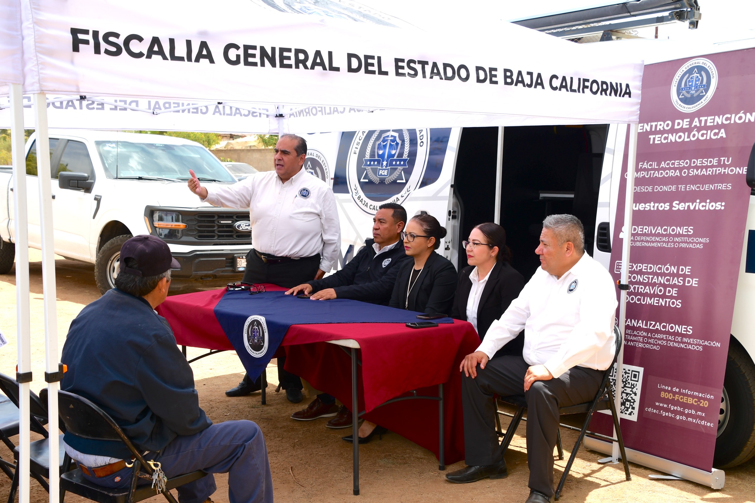 ENSENADA, BAJA CALIFORNIA. - Como parte de las acciones del programa “Fiscal Enlace Contigo”, la Fiscalía General del Estado acercó sus servicios de procuración de justicia a la comunidad de San Vicente, facilitando atención directa a las y los ciudadanos en esta delegación de Ensenada.