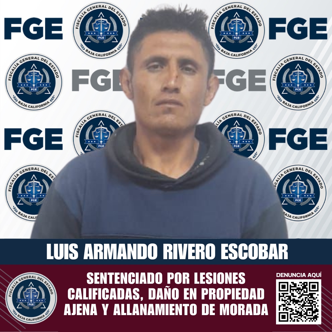 SAN QUINTÍN, BAJA CALIFORNIA. - La Fiscalía General del Estado, a través de la Unidad de Investigación de San Quintín, obtuvo una sentencia condenatoria mediante procedimiento abreviado en contra de Luis Armando Rivero Escobar, declarado culpable de lesiones calificadas, daño en propiedad ajena y allanamiento de morada.
