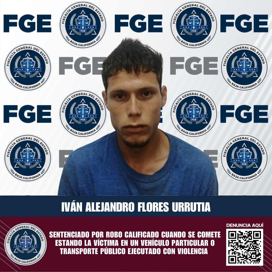 ENSENADA, BAJA CALIFORNIA. - La Fiscalía Regional de Ensenada, a través de la Unidad de Investigación de Robos, obtuvo una sentencia condenatoria en procedimiento abreviado contra Iván Alejandro Flores Urrutia, quien fue encontrado culpable de cometer tres robos con violencia en perjuicio de conductores de plataformas digitales de transporte.