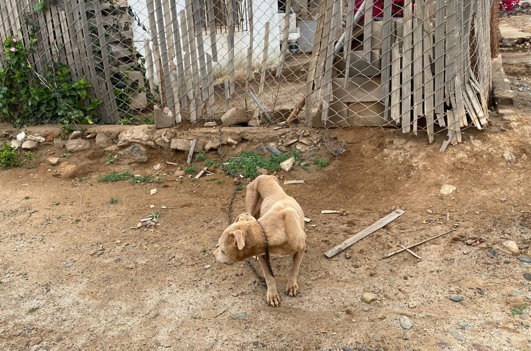 Durante la diligencia realizada el 03 de junio del presente año, personal de la Fiscalía y agentes de la Agencia Estatal de Investigación (AEI) se trasladaron al lugar, donde observaron un predio cercado con malla ciclónica. En el interior se localizó una vivienda de un solo nivel, y en el lado izquierdo del inmueble se encontraba un canino, raza criolla, de color café, amarrado con una cadena metálica, sin acceso a agua, alimento ni sombra.