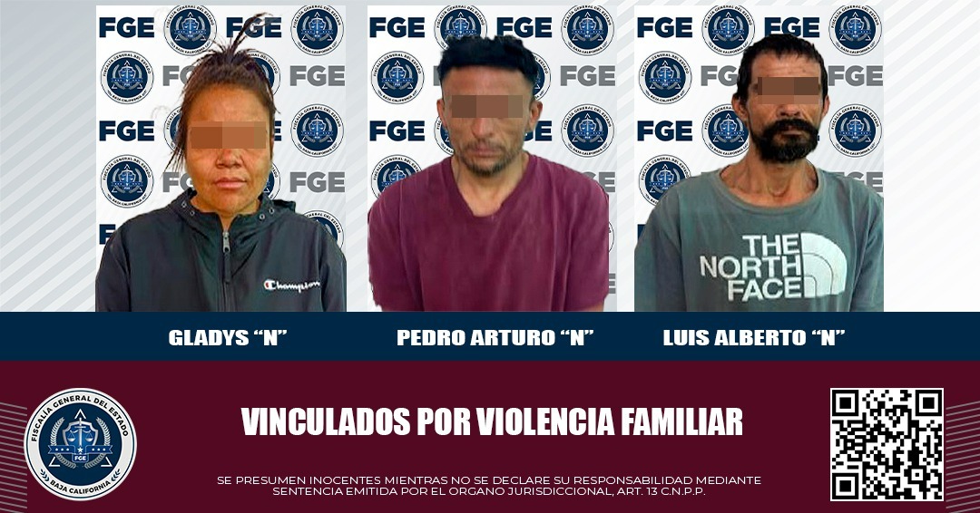 MEXICALI, BAJA CALIFORNIA. - La Fiscalía Regional de Mexicali, a través de la Unidad de Investigación de Detenidos Oriente, logró que el Juez de Control iniciara proceso penal en contra de tres personas, tras presentar pruebas sólidas y argumentos jurídicos que las vinculan con hechos de violencia familiar.
