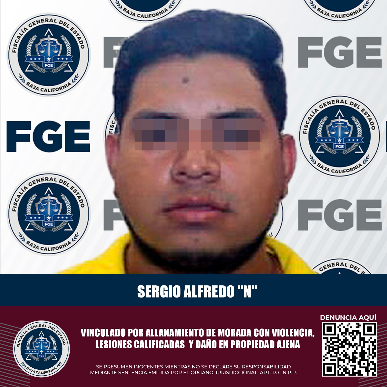 MEXICALI, BAJA CALIFORNIA. - Con base en los datos de prueba presentados por la Fiscalía Regional de Mexicali, a través de la Unidad de Investigación Foránea de Ciudad Morelos, un Juez de Control vinculó a proceso a Sergio Alfredo “N”, por su presunta responsabilidad en los delitos de allanamiento de morada con violencia, lesiones calificadas y daño en propiedad ajena.