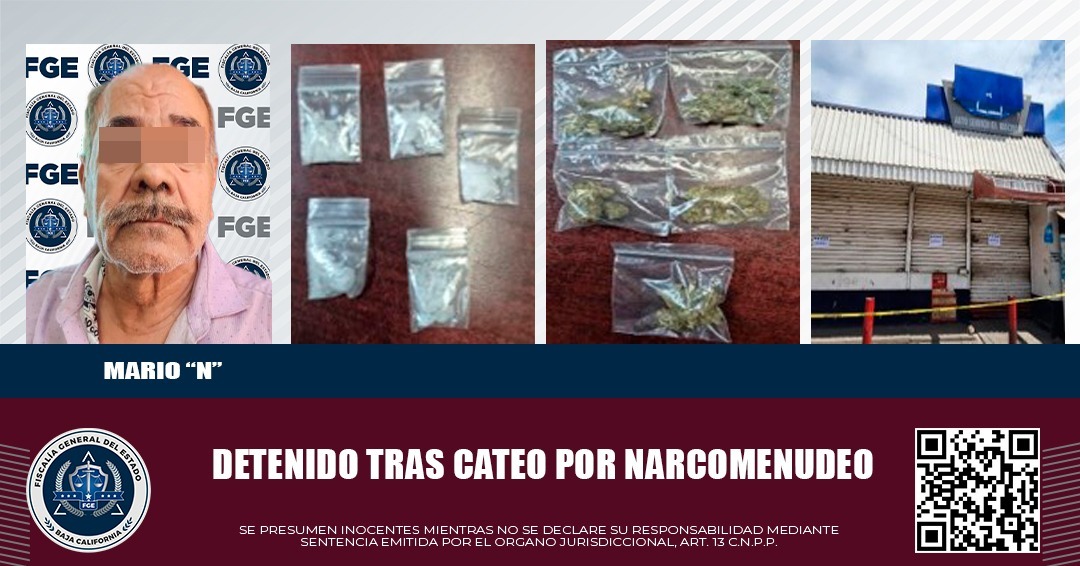 El operativo se llevó a cabo el día 28 de mayo, aproximadamente a las 10:45 horas, donde en dicho recinto se detuvo al individuo denominado como Mario “N”, además se aseguró diversos narcóticos indebidos, entre los cuales destacan cinco bolsas de plástico transparentes que contenían una sustancia blanca y granulada con las características de la droga conocida como metanfetamina,