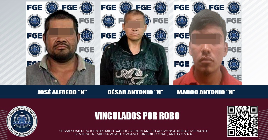 MEXICALI, BAJA CALIFORNIA. - 09 DE JUNIO DE 2025.- La Fiscalía Regional de Mexicali logró, en audiencias celebradas por separado, la vinculación a proceso de tres hombres acusados del delito de robo en sus diferentes modalidades.
