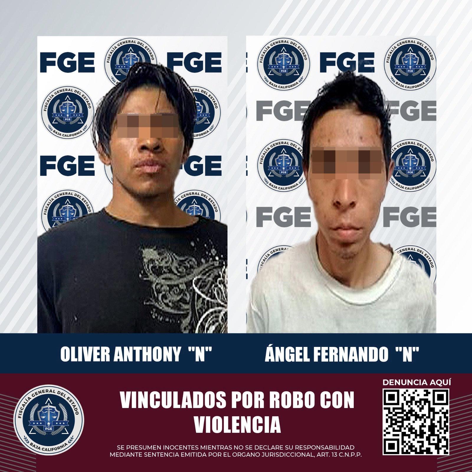 MEXICALI, BAJA CALIFORNIA. - La Fiscalía Regional de Mexicali, a través de la Unidad de Investigación con Detenidos Oriente, logró la vinculación a proceso de dos personas imputadas por el delito de robo calificado, cometido con violencia en establecimientos comerciales abiertos al público.