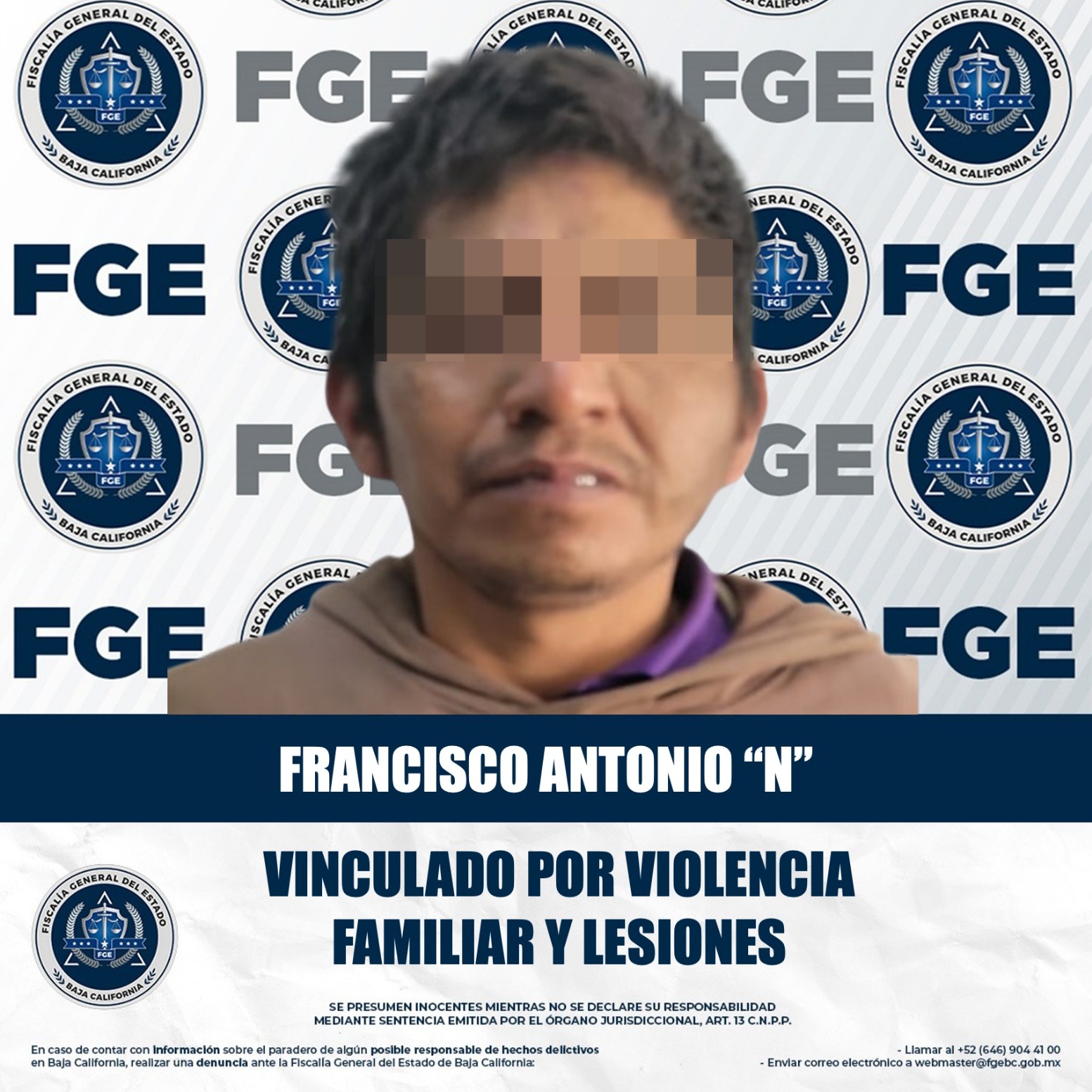 TIJUANA, BAJA CALIFORNIA. - La Fiscalía Regional de Tijuana, obtuvo la vinculación a proceso de un individuo señalado como presunto responsable de ejercer violencia en contra de sus familiares.
