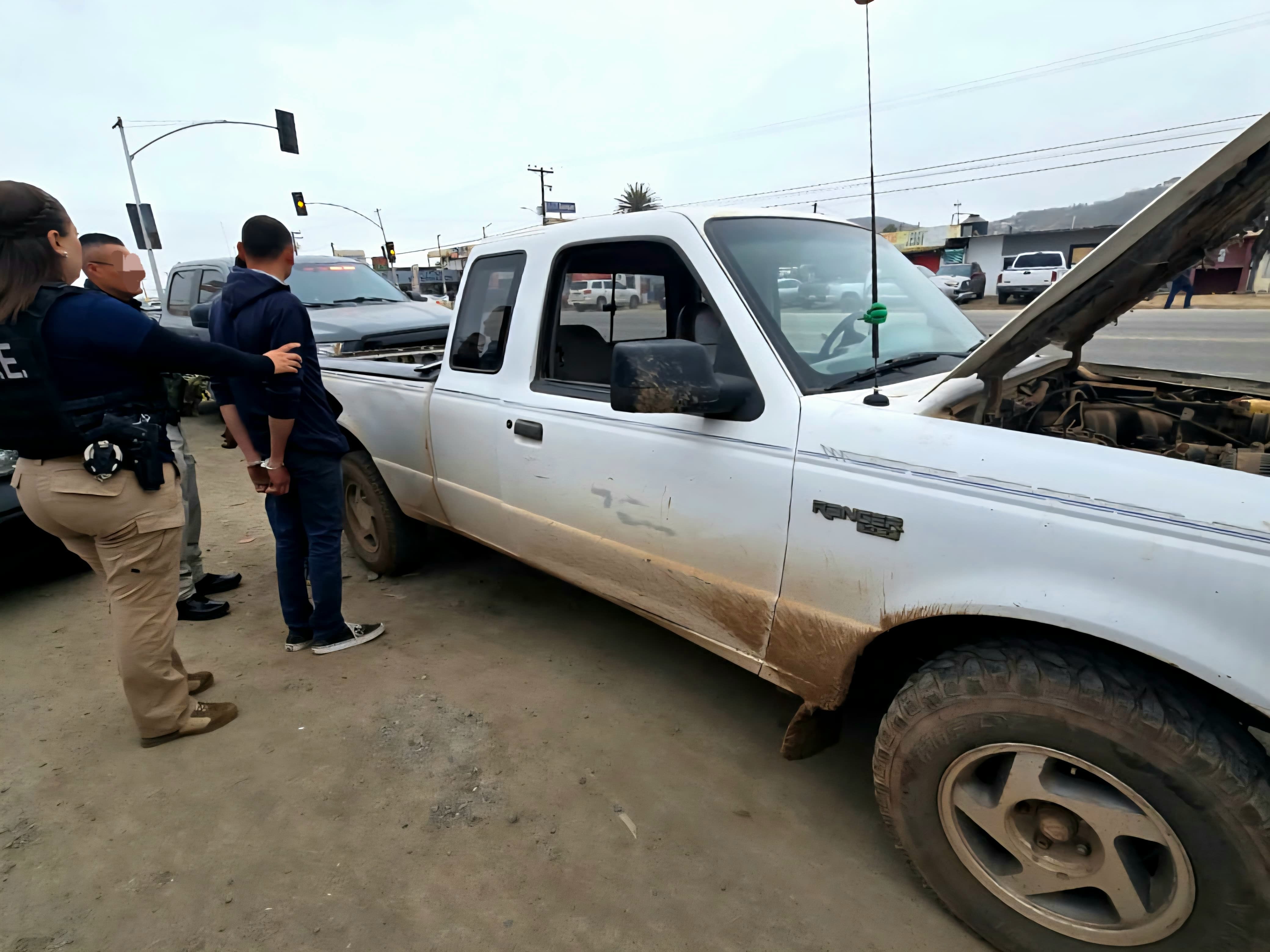 ENSENADA, BAJA CALIFORNIA. - Como parte de las acciones estratégicas para combatir el robo de vehículos, la Fiscalía General del Estado, a través del Grupo Contra Robo de Vehículos de la Agencia Estatal de Investigación, realizó un operativo en distintos puntos de la zona sur de Ensenada, logrando el aseguramiento de un vehículo con reporte de robo y la detención de dos personas.
