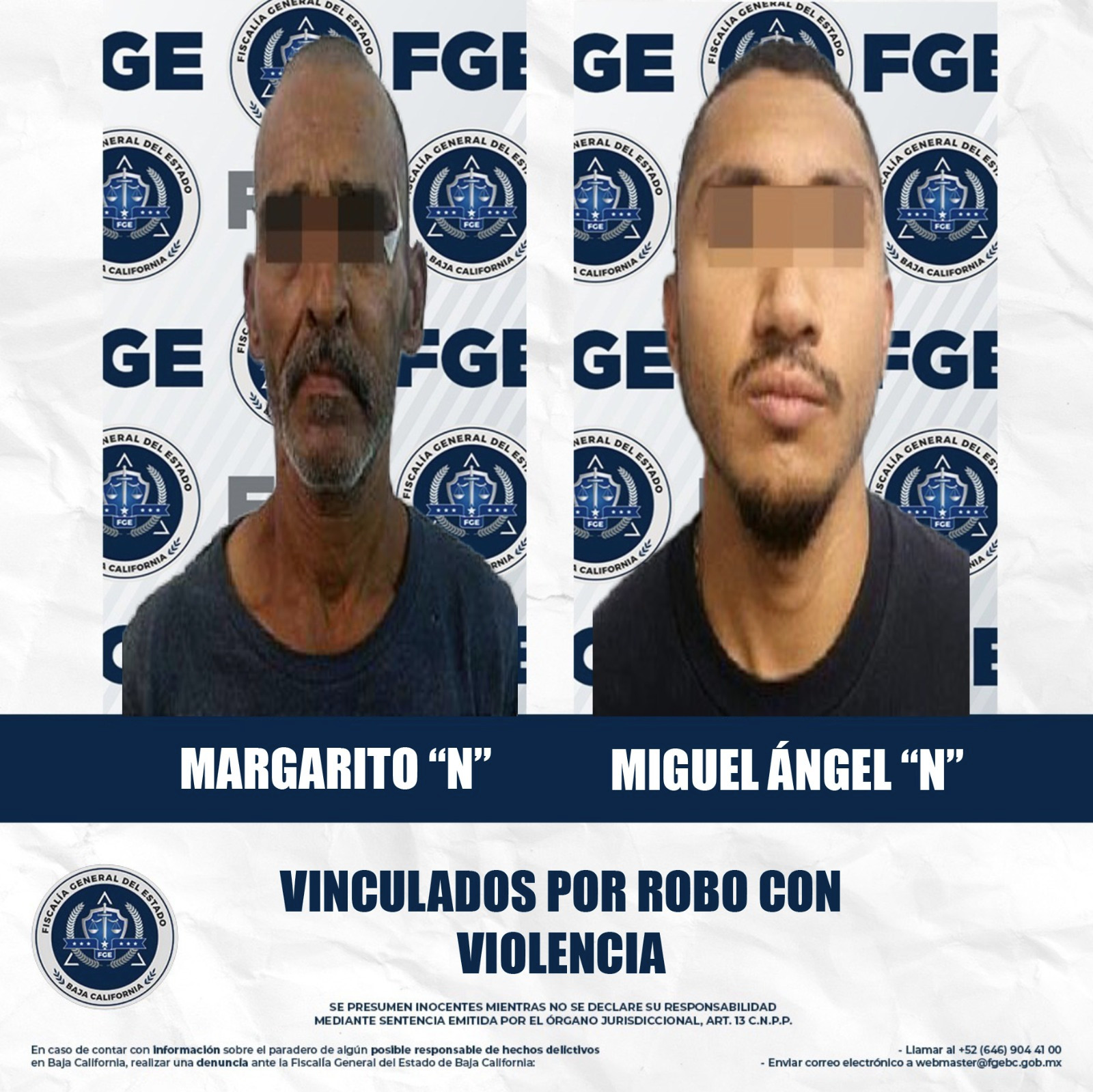 MEXICALI, BAJA CALIFORNIA. - La Fiscalía Regional de Mexicali, a través de la Unidad de Investigación de Robos Poniente, obtuvo la vinculación a proceso de dos individuos por su presunta participación en delitos de robo calificado a lugar cerrado y robo calificado cometido por dos o más personas con violencia.