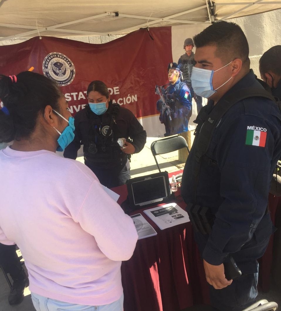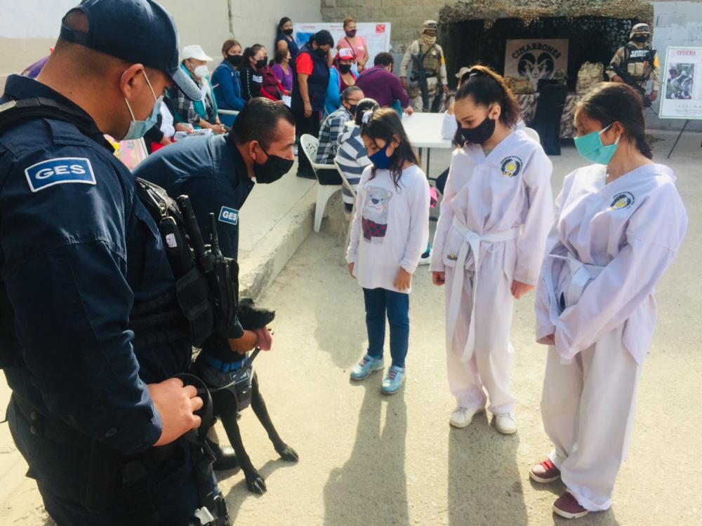 Ahí elementos de Proximidad Comunitaria de la GESI y de la Unidad de Operaciones Caninas, instalaron un módulo de orientación a la comunidad.