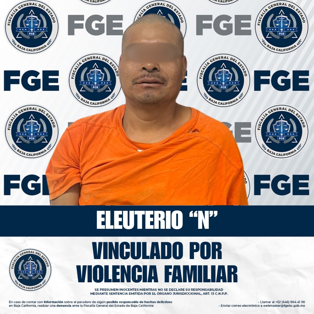 SAN QUINTÍN, BAJA CALIFORNIA. - La Fiscalía Regional de San Quintín logró la vinculación a proceso de Eleuterio “N” por el delito de violencia familiar, tras ser señalado por agredir físicamente a su pareja en la colonia Margarita.