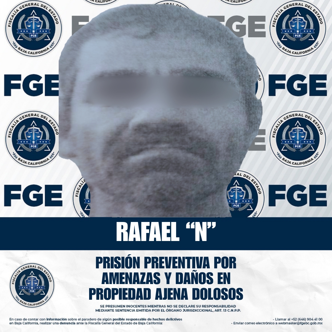 ENSENADA, BAJA CALIFORNIA. - La Fiscalía Regional de Ensenada, a través de la Unidad de Tramitación Masiva de Causas, obtuvo la vinculación a proceso de Rafael “N” por los delitos de amenazas y daños dolosos a propiedad ajena.