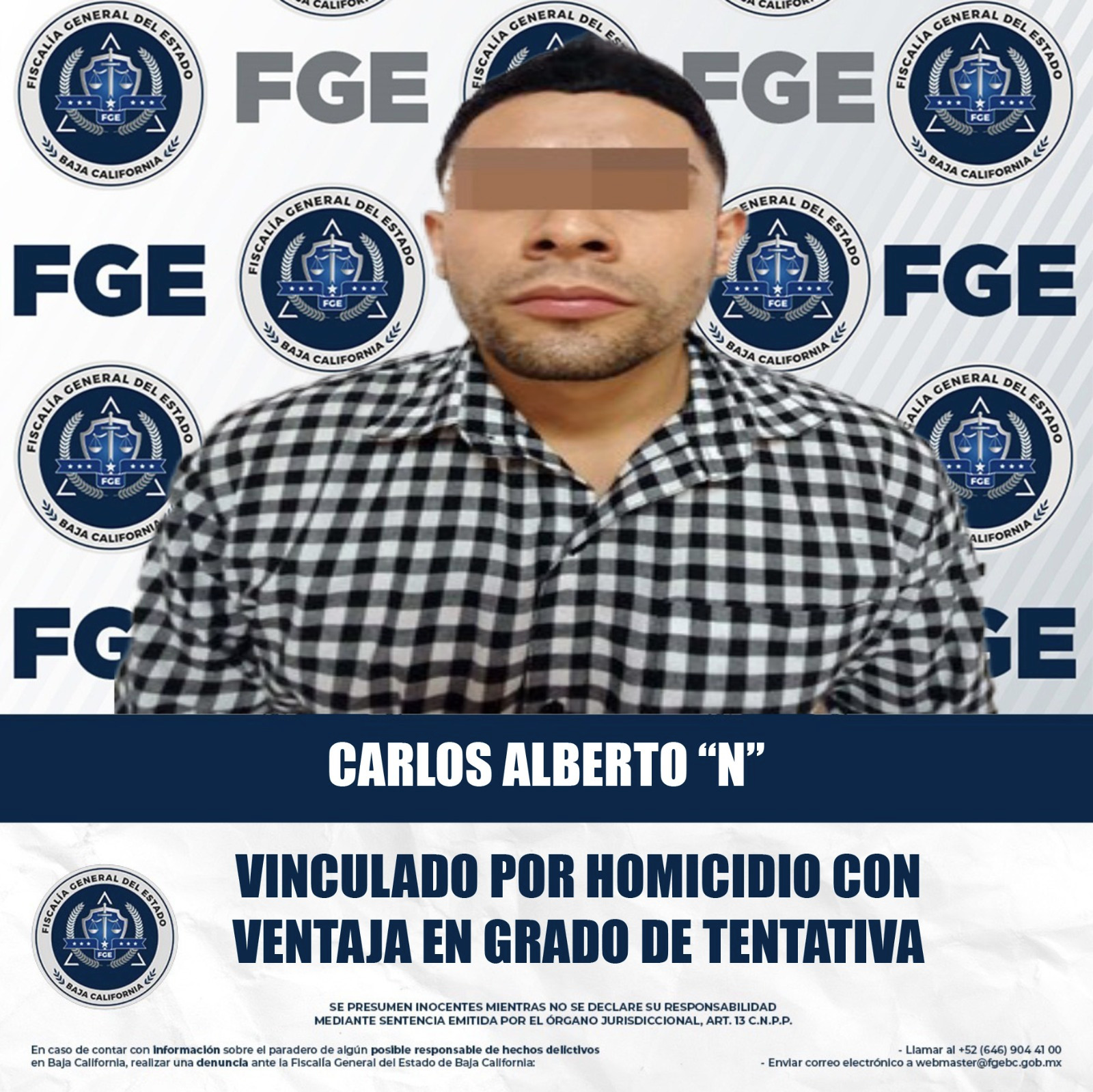 MEXICALI, BAJA CALIFORNIA. - Con base en los elementos de prueba presentados por la Fiscalía General del Estado (FGE), a través de la Fiscalía Especializada en Delitos Contra la Vida, se obtuvo la vinculación a proceso de Carlos Alberto “N”, por su presunta responsabilidad en el delito de homicidio calificado en grado de tentativa.