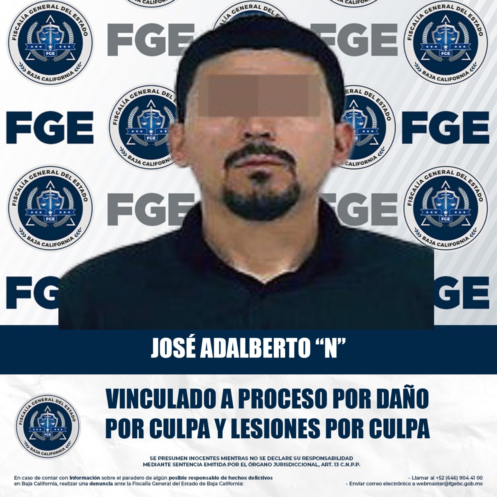 TECATE, BAJA CALIFORNIA. - La Fiscalía Regional de Tecate, a través de la Unidad de Investigación de Delitos con Detenidos, obtuvo la vinculación a proceso de José Adalberto “N”, por su presunta responsabilidad en el delito de daños y lesiones por culpa.