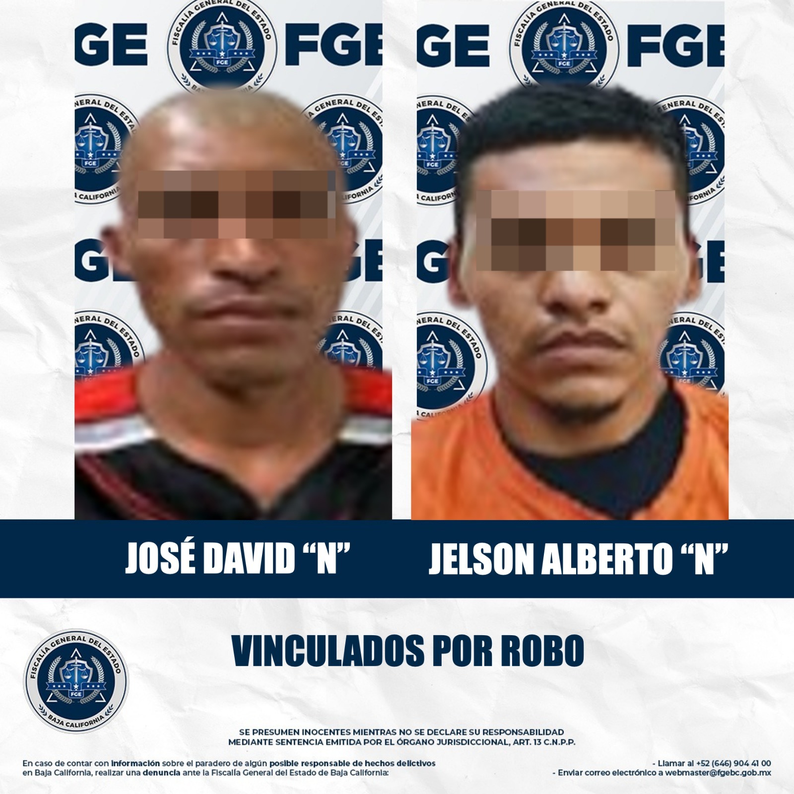 MEXICALI, BAJA CALIFORNIA. - Dos hombres relacionados en robos con violencia fueron vinculados a proceso por la Fiscalía Regional de Mexicali, con base en el trabajo de las Unidades de Investigación con Detenidos Poniente y Robos Poniente.