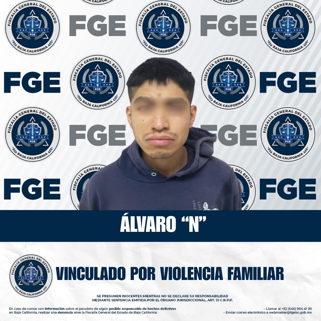 SAN QUINTÍN, BAJA CALIFORNIA. - La Fiscalía Regional de San Quintín obtuvo la vinculación a proceso de Álvaro “N”, por su probable responsabilidad en el delito de violencia familiar, cometido en perjuicio de un familiar del sexo masculino.