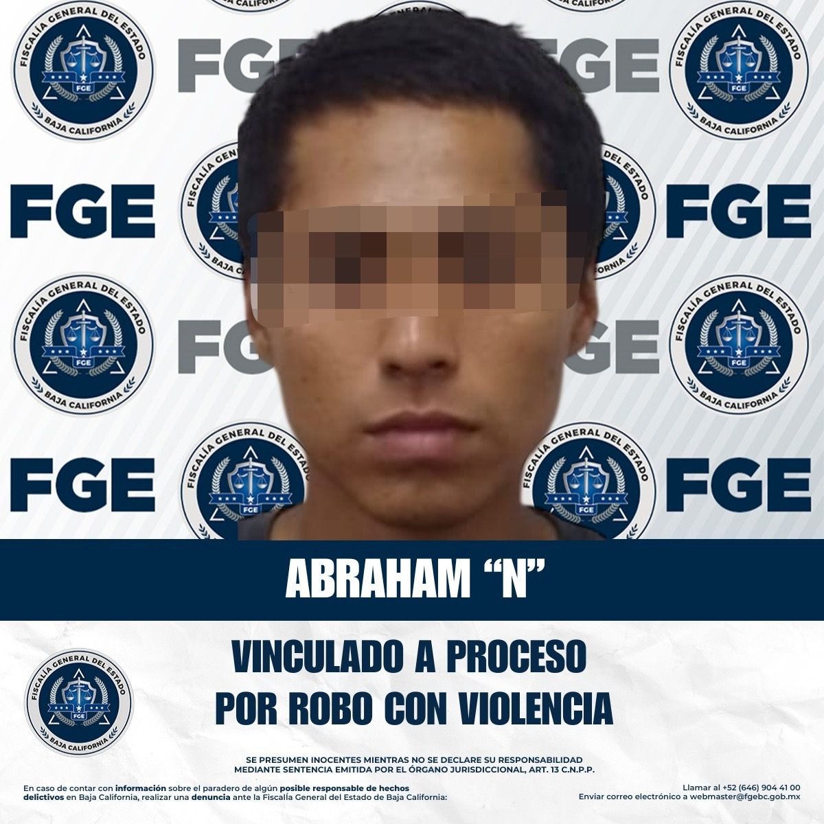 La Fiscalía General del Estado, encabezada por la Dra. Ma. Elena Andrade Ramírez, refrenda su compromiso con la justicia y con la seguridad de las y los bajacalifornianos, llevando ante los tribunales a quienes atentan contra la paz y el patrimonio de la ciudadanía.