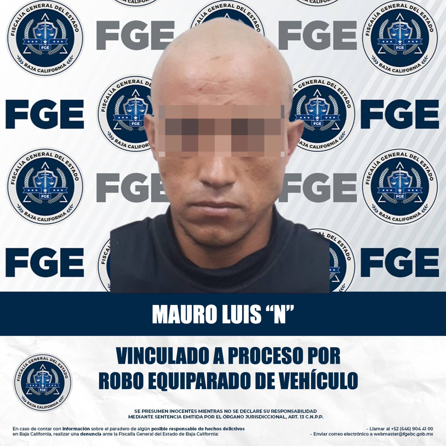 TIJUANA, BAJA CALIFORNIA. - La Fiscalía General del Estado de Baja California, a través de la Fiscalía Regional de Tijuana y la Unidad de Investigación de Robo de Vehículos Zona Tijuana, obtuvo la vinculación a proceso de Mauro Luis “N”, por su probable responsabilidad en el delito de posesión de vehículo de motor con reporte de robo.