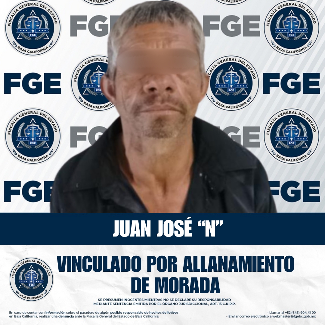 ENSENADA, BAJA CALIFORNIA. - La Fiscalía Regional de Ensenada, en coordinación con la Unidad de Investigación con Detenido, logró la vinculación a proceso de Juan José “N” por el delito de allanamiento de morada.