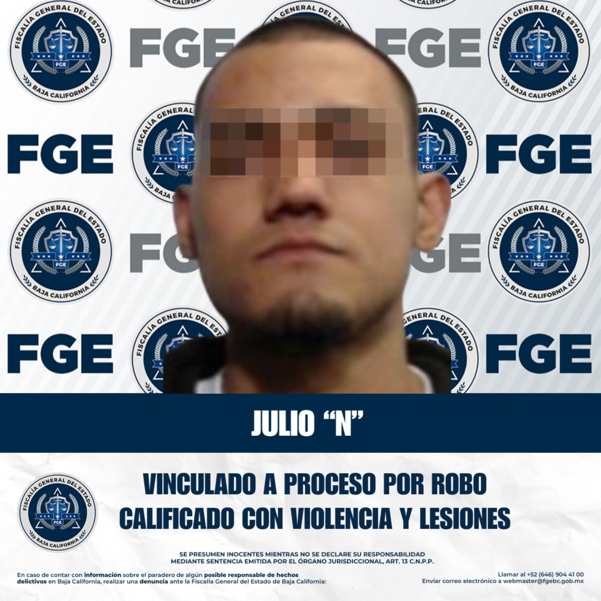 TIJUANA, BAJA CALIFORNIA. - A través de las labores de la Unidad Especializada en Robo Zona Centro, la Fiscalía Regional de Tijuana logra la vinculación a proceso de Julio “N” por el delito de robo calificado cometido de noche, en grado de tentativa, con la agravante de que la víctima se encontraba a bordo de un vehículo de transporte público, así como por lesiones calificadas.