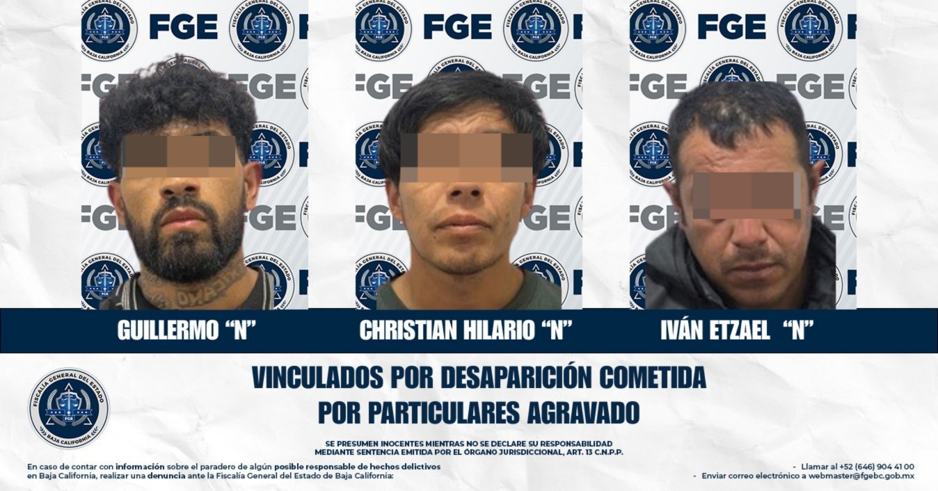 TIJUANA, BAJA CALIFORNIA. – En un operativo encabezado por la Agencia Estatal de Investigación de la Zona Tijuana, dependiente de la Fiscalía General del Estado de Baja California y en colaboración con la Fiscalía Especializada para la Investigación y Persecución de Delitos de Desaparición Forzada de Personas y Desaparición Cometida por Particulares, se hicieron efectivas tres órdenes de aprehensión por el delito de Desaparición Cometida por Particulares Agravada.