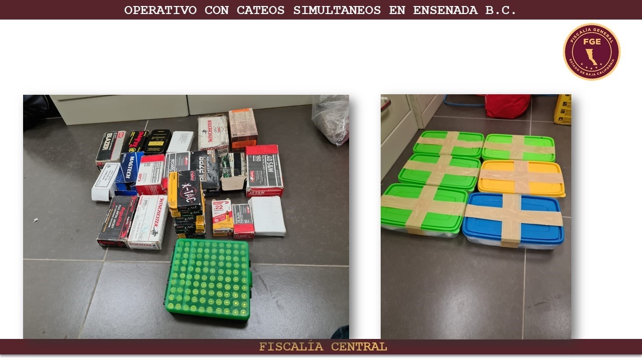 La Fiscalía General del Estado (FGE), asestó otro contundente golpe a la delincuencia en Ensenada, con la detención de 11 personas relacionadas con una célula delictiva y el decomiso de 22 armas de fuego, 6 kilogramos de metanfetamina y 1664 cartuchos de diversos calibres.