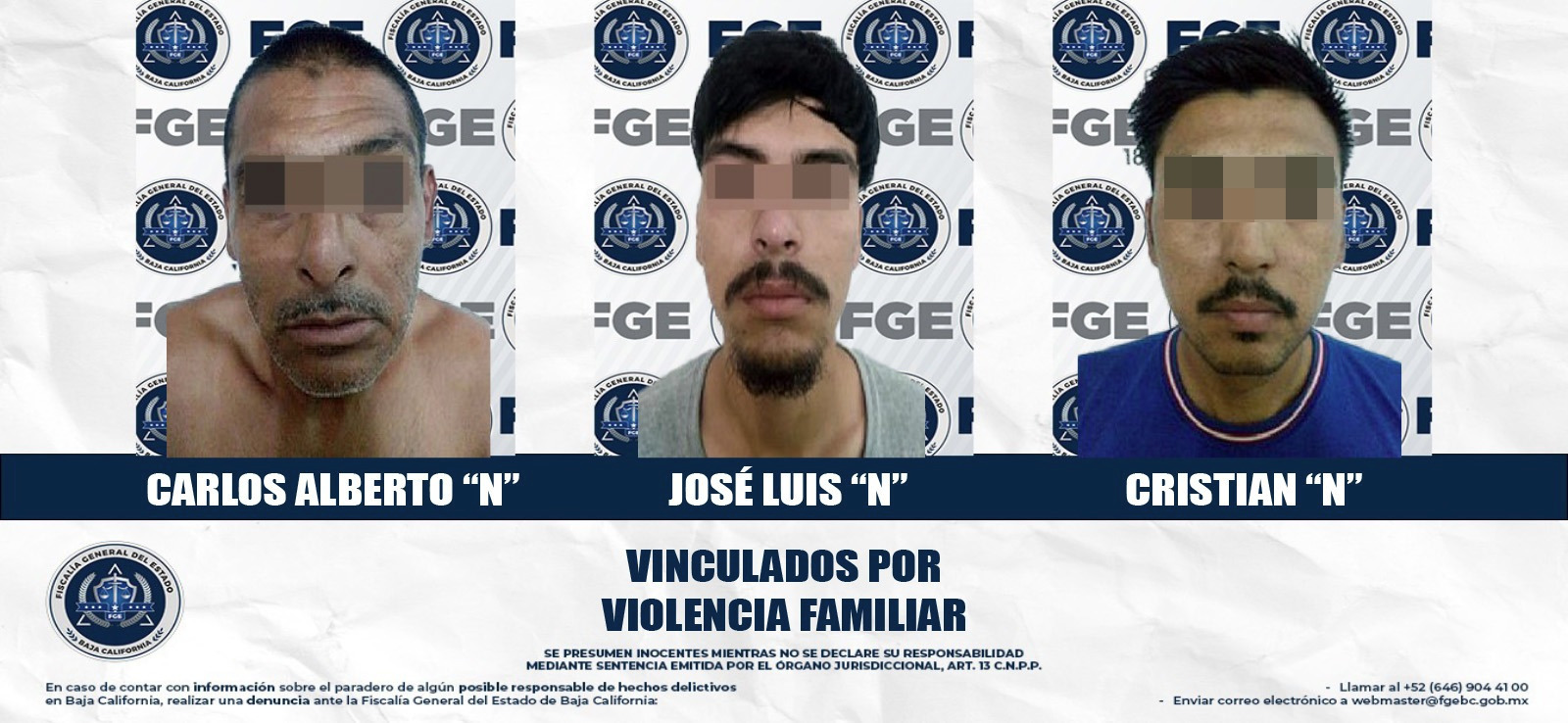 MEXICALI, BAJA CALIFORNIA. - La Fiscalía Regional de Mexicali logró la vinculación a proceso de tres individuos por el delito de violencia familiar, en el marco de audiencias celebradas de manera separada.