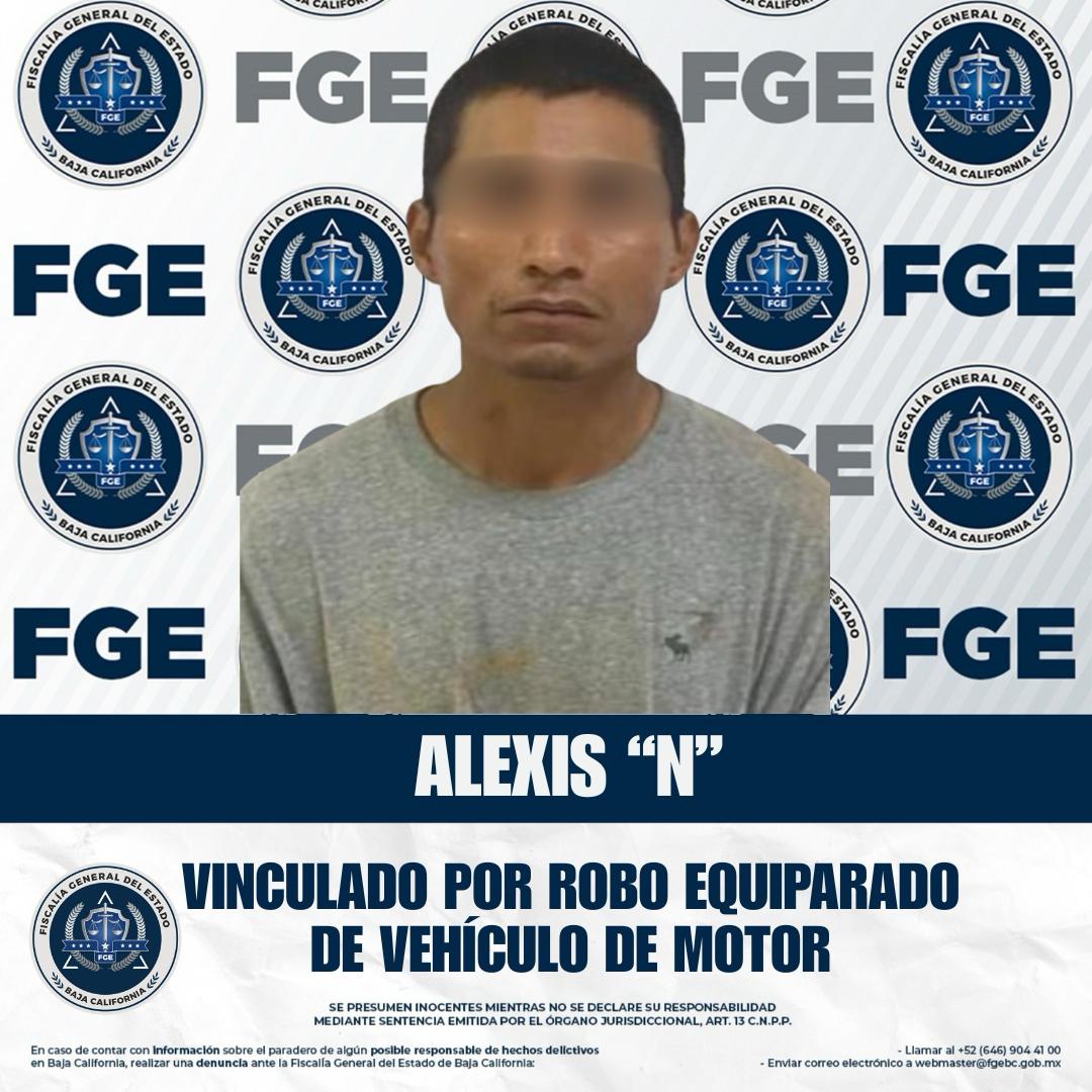 SAN QUINTÍN, BAJA CALIFORNIA. - La Fiscalía Regional de San Quintín logró la vinculación a proceso de Alexis “N”, por su presunta responsabilidad en el delito de robo equiparado de vehículo, tras ser detenido en la colonia Benito García.