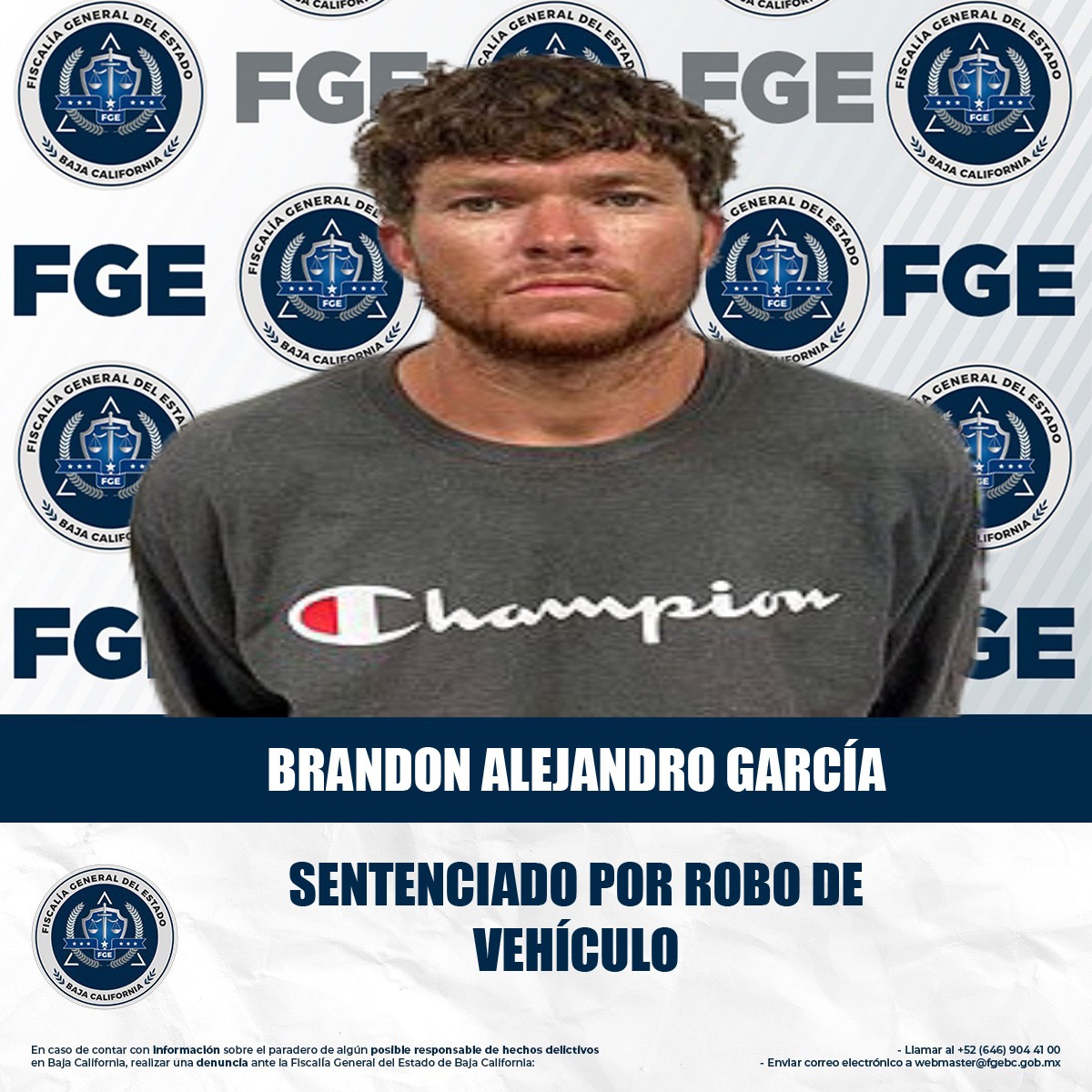 SAN FELIPE, BAJA CALIFORNIA. - La Fiscalía Regional de San Felipe, a través de la Unidad de Control de Investigación y Proceso Penal, obtuvo una sentencia condenatoria de cinco años de prisión contra Brandon Alejandro García, tras acreditarse, mediante juicio oral, su responsabilidad en el delito de robo de vehículo.