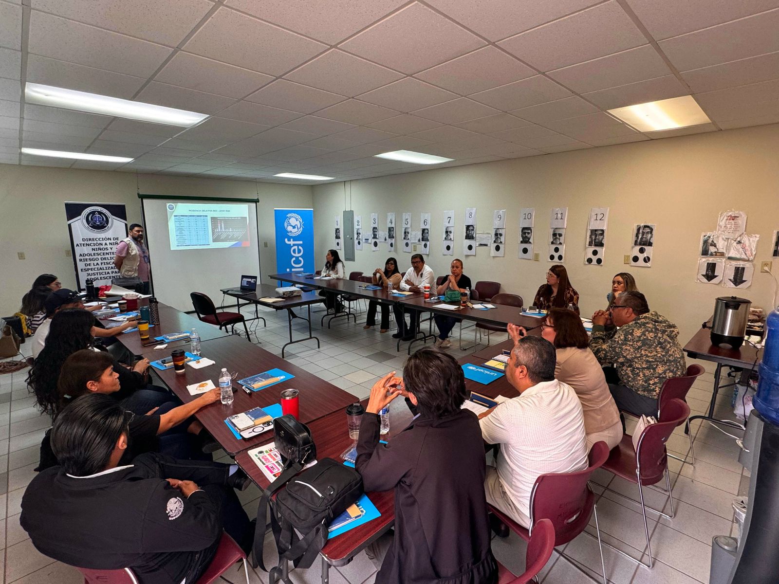 El taller, titulado "Desarrollo de habilidades del servidor público en la atención de temas de actualidad relacionados con niñas, niños y adolescentes en riesgo delictivo", fue impartido por destacados especialistas: José Antonio Garibay de la Cruz y Laura Dania Ortega Figueroa, oficiales de Protección a la Infancia de UNICEF en México, así como por la Mtra. Gabriela Vargas Clemente, experta en violencias y representante del sistema de Naciones Unidas.
