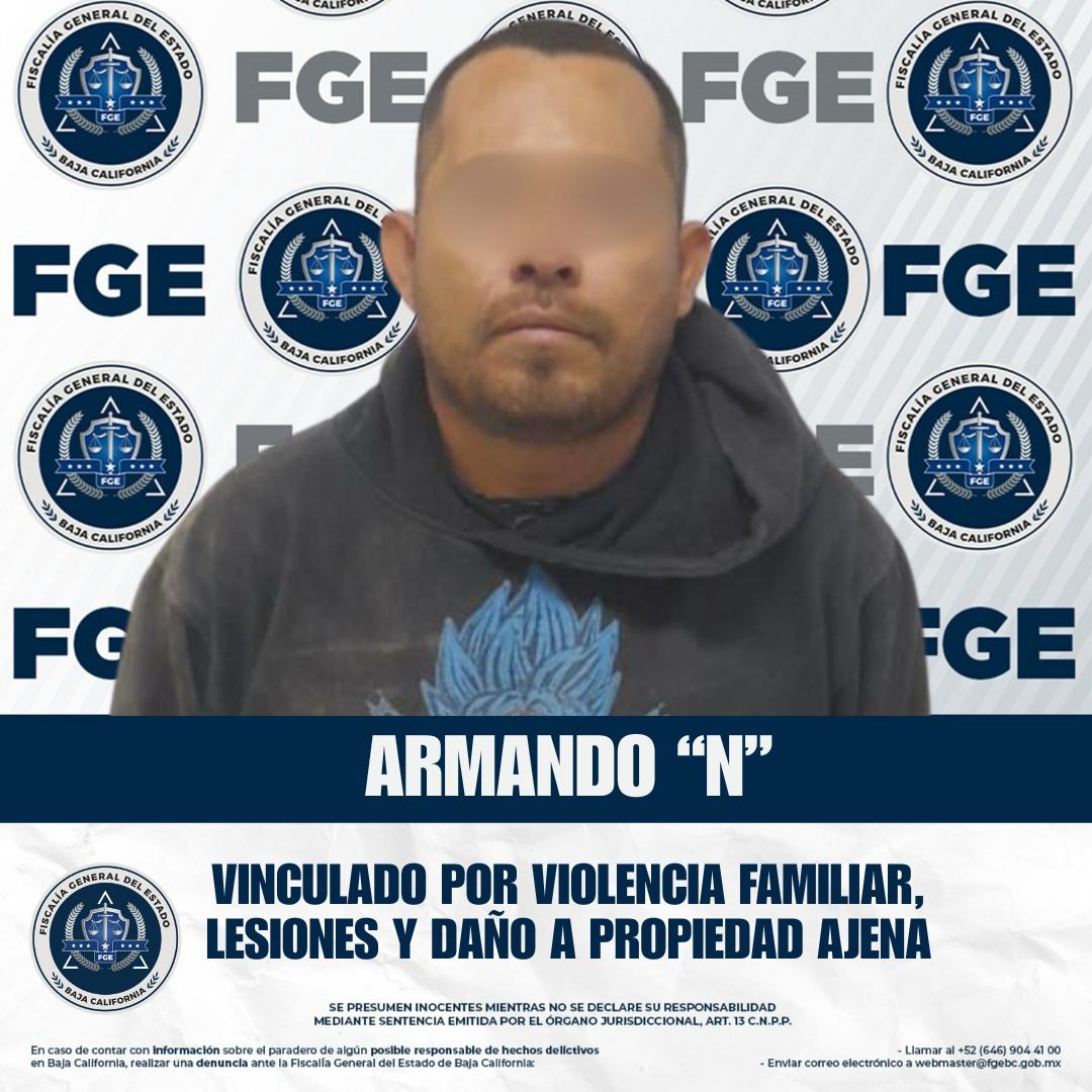 SAN QUINTÍN, BAJA CALIFORNIA. - La Fiscalía Regional de San Quintín, en conjunto con la Unidad de Investigación, obtuvo la vinculación a proceso de Armando “N” por su probable responsabilidad en los delitos de violencia familiar, lesiones y daño a propiedad ajena.