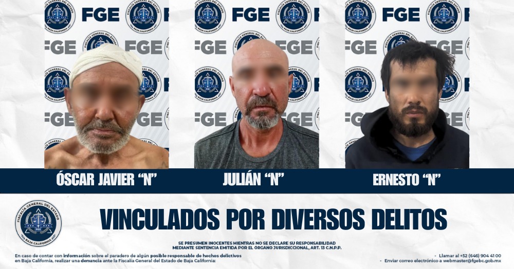 Por diversos delitos, dictan prisión preventiva a tres sujetos detenidos en Ensenada