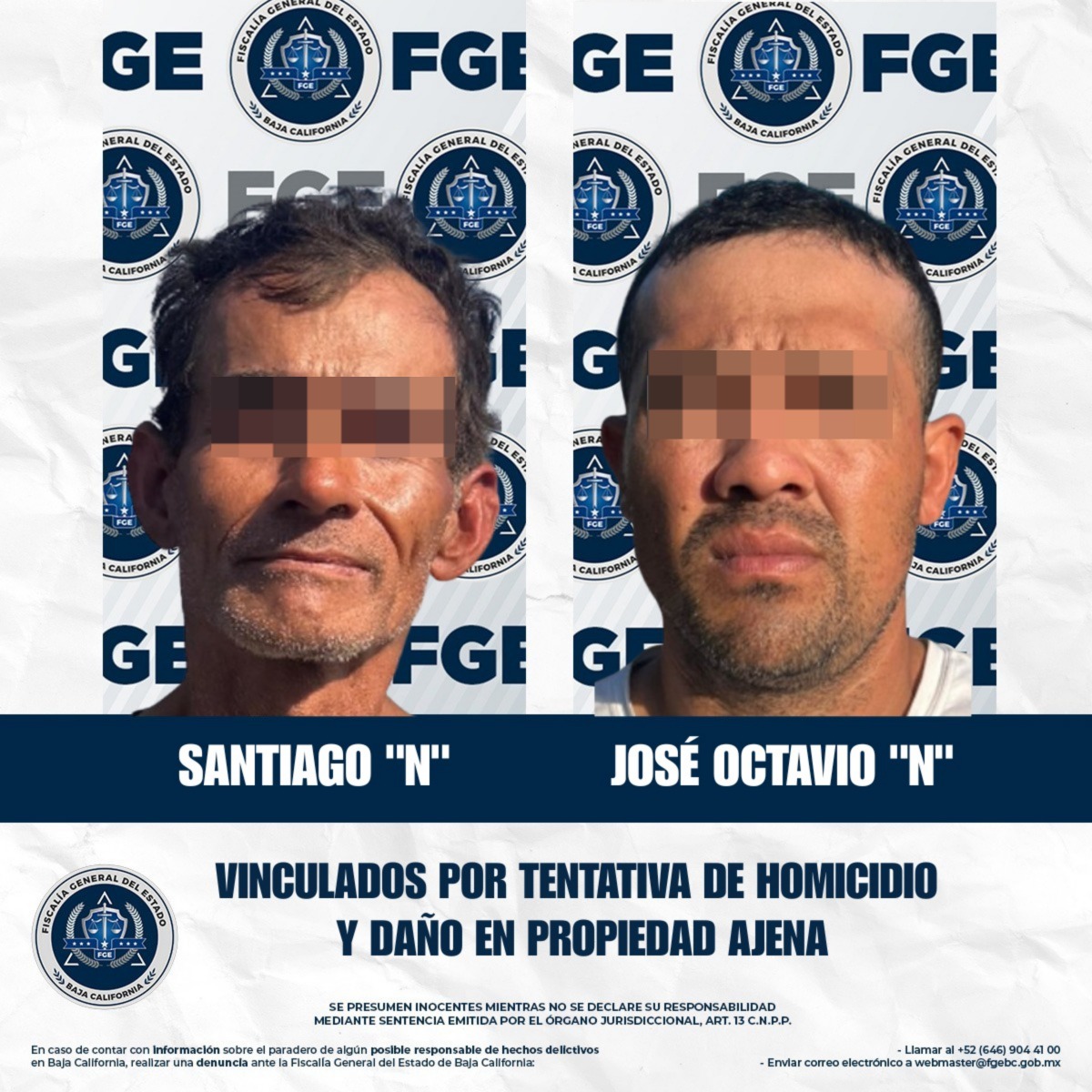 TIJUANA, BAJA CALIFORNIA. - La Fiscalía General del Estado de Baja California, a través de la Fiscalía Especializada en Delitos contra la Vida, ha logrado obtener vinculación a proceso penal por homicidio calificado en grado de tentativa y daño en propiedad ajena en contra de José Octavio “N” y Santiago “N”, quienes fueron detenidos en flagrancia el 24 de junio de 2025, tras un ataque armado en contra de un civil.