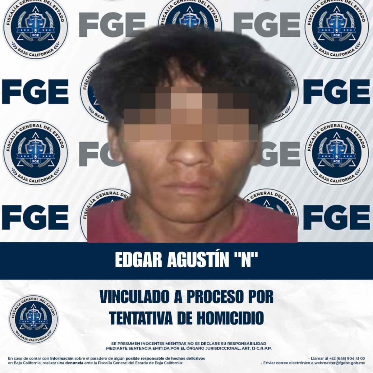 TIJUANA, BAJA CALIFORNIA. - La Fiscalía General del Estado, a través de la Fiscalía Especializada en Delitos Contra la Vida, informa que logró la vinculación a proceso en contra de Edgar Agustín “N”, por su probable responsabilidad en el delito de homicidio calificado en grado de tentativa.